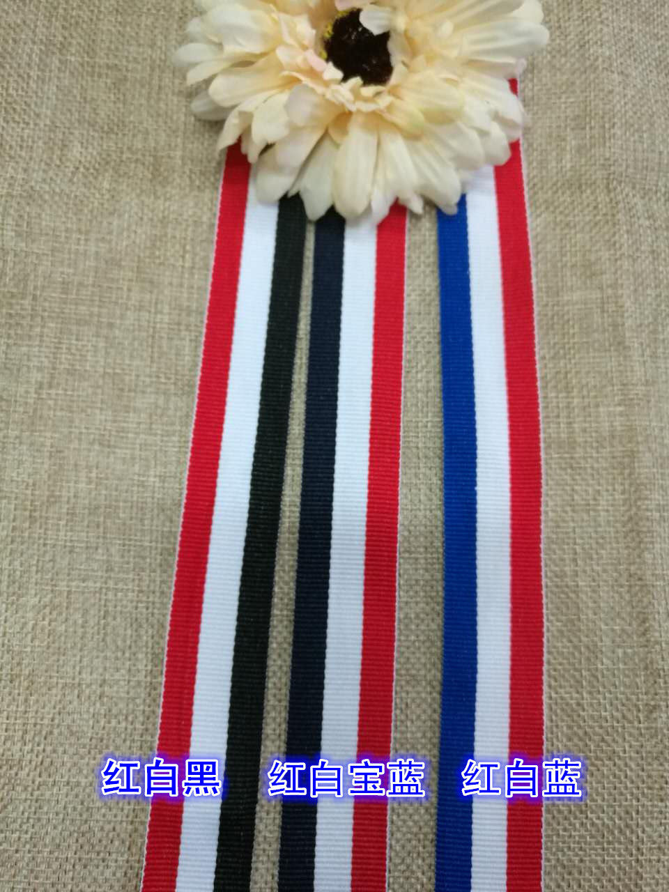 📚 三色条纹织带涤纶海军风彩带奖牌带间色织带蓝白红白黑藏青宝蓝