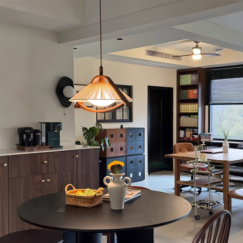 📚 宋代美学实木中古吊灯主卧室侘寂风复古茶室艺术创意餐桌餐厅灯具
