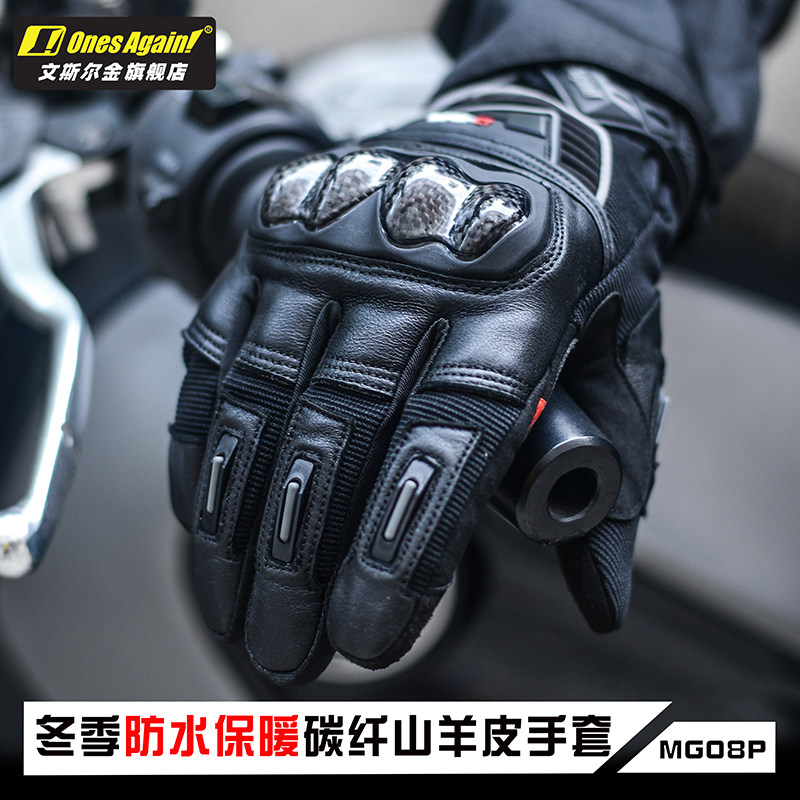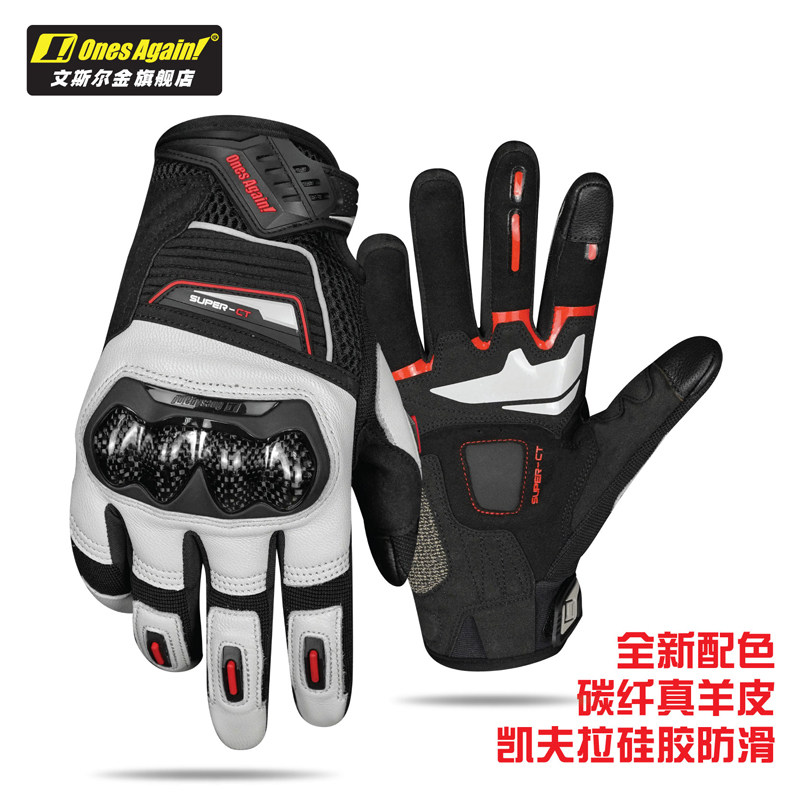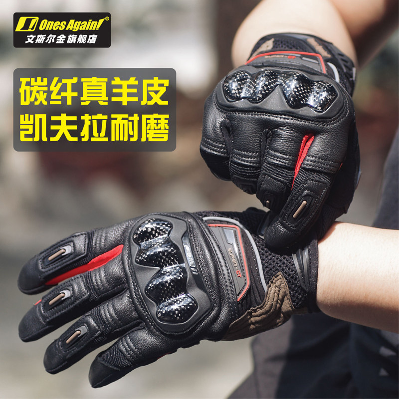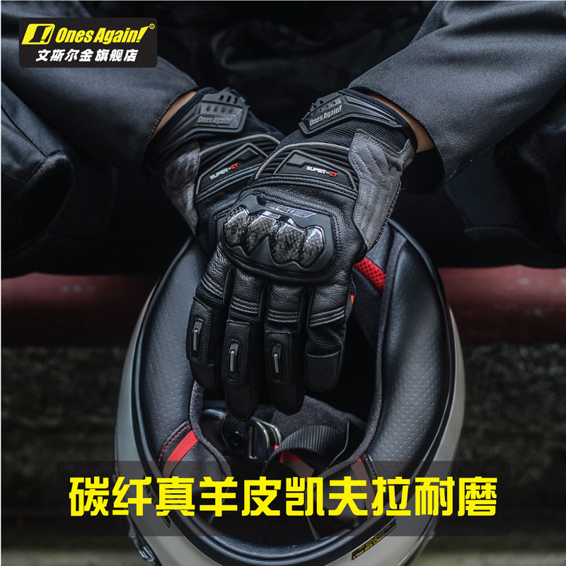 📚 Ones Again摩托车真皮手套复古碳纤维男机车骑行防摔四季摩旅装备