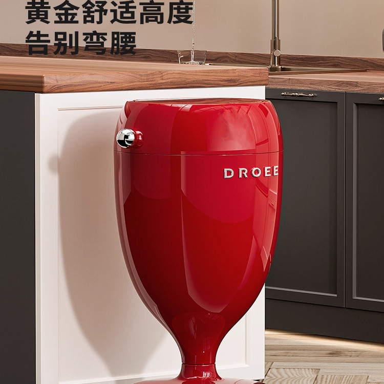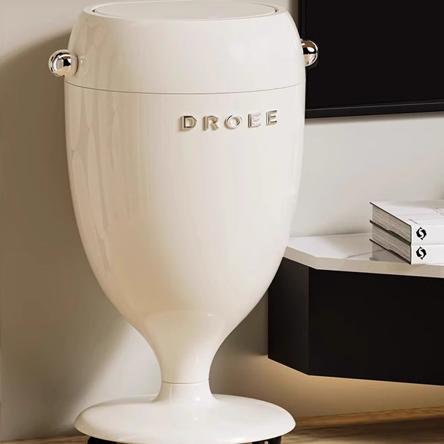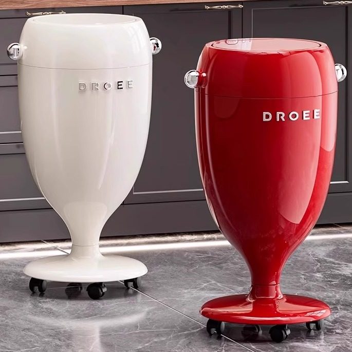 📚 垃圾桶客厅卧室高脚酒杯免弯腰家用安格拉红大容量带轮可移动