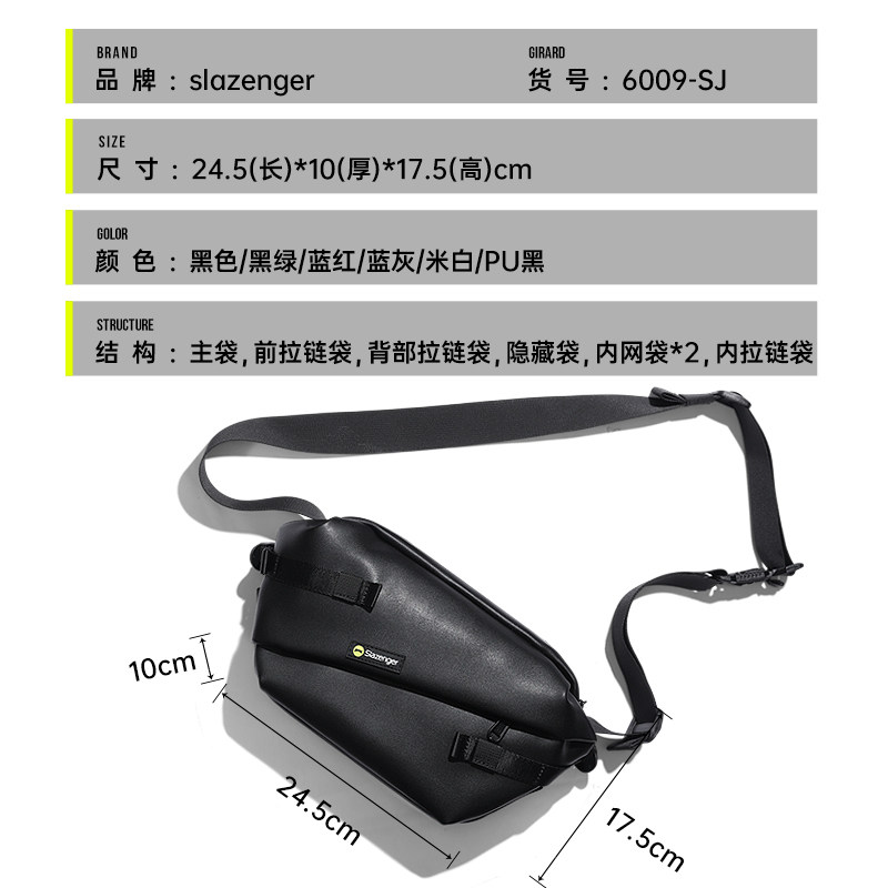 📚 Slazenger潮牌斜挎包男2025新款PU单肩斜挎包胸包男学生休闲腰包