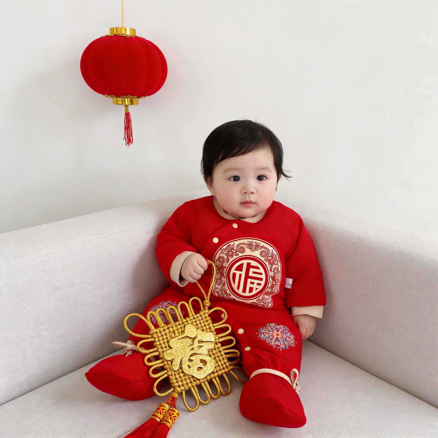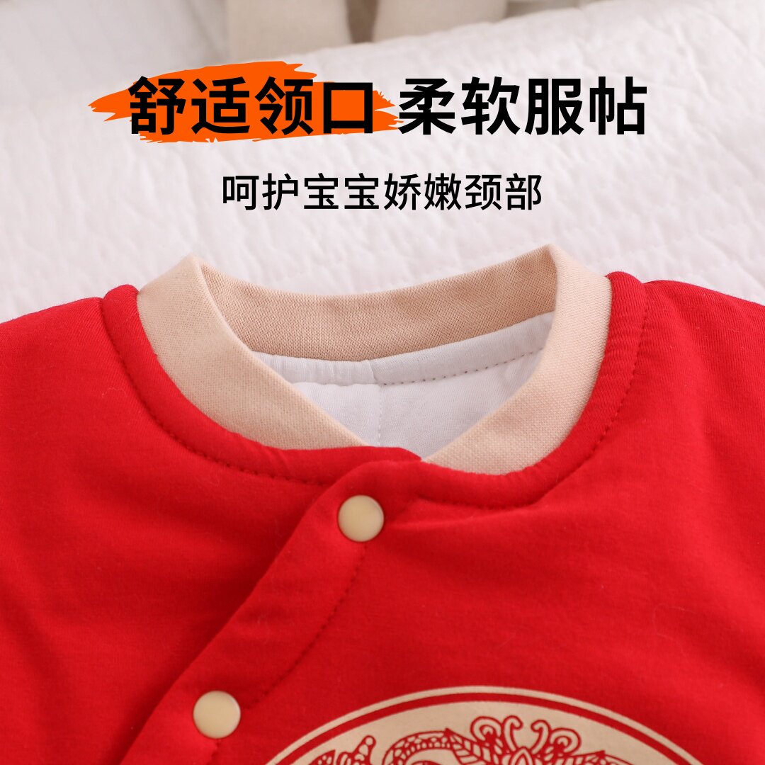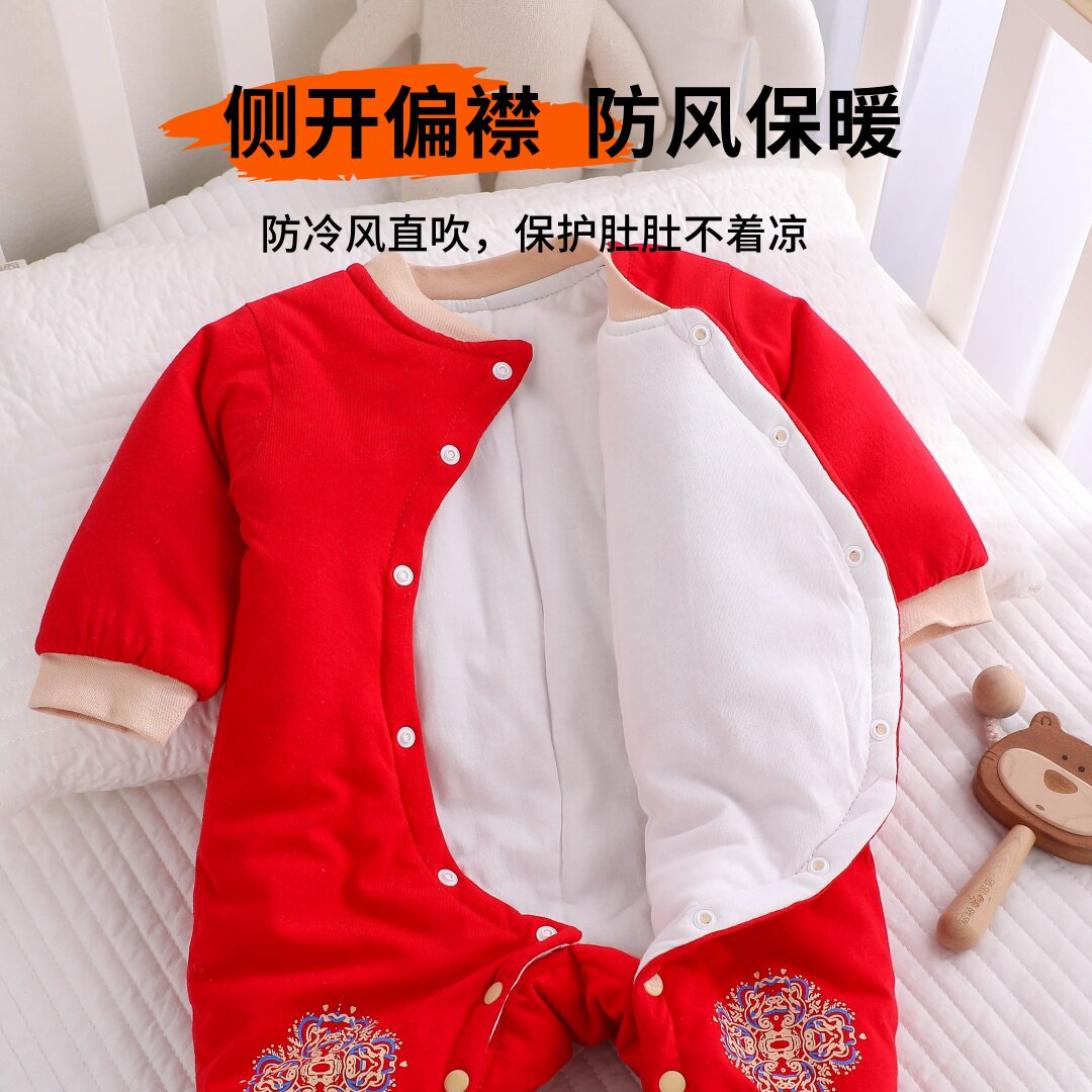📚 宝宝棉服红色过年夹棉外出棉衣连体婴儿棉袄女宝冬季加厚拜冬年服