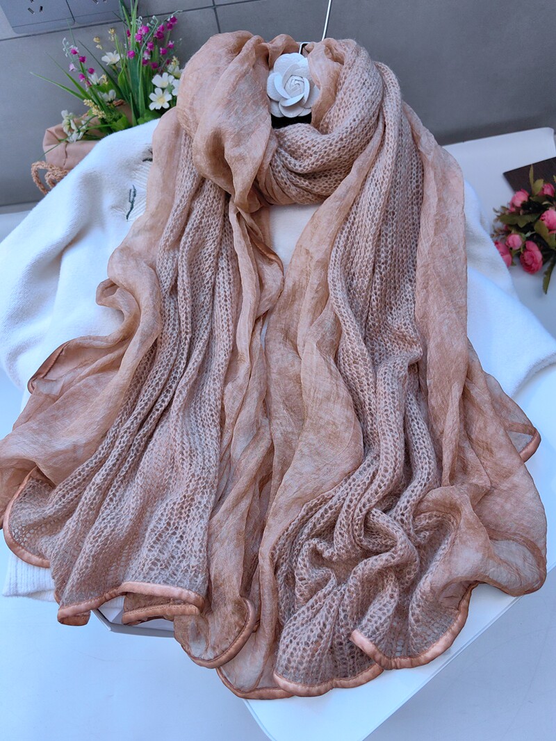 📚 秋冬新款咖啡卡其驼棕色真丝羊绒毛线拼接韩版围巾女披肩洋气时尚
