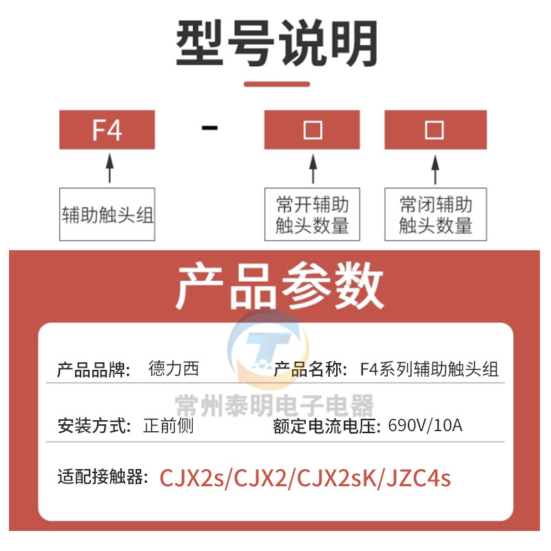 📚 德力西接触器CJX2S辅助触头F4-11/20/02触点二常闭二常开适用CJX2