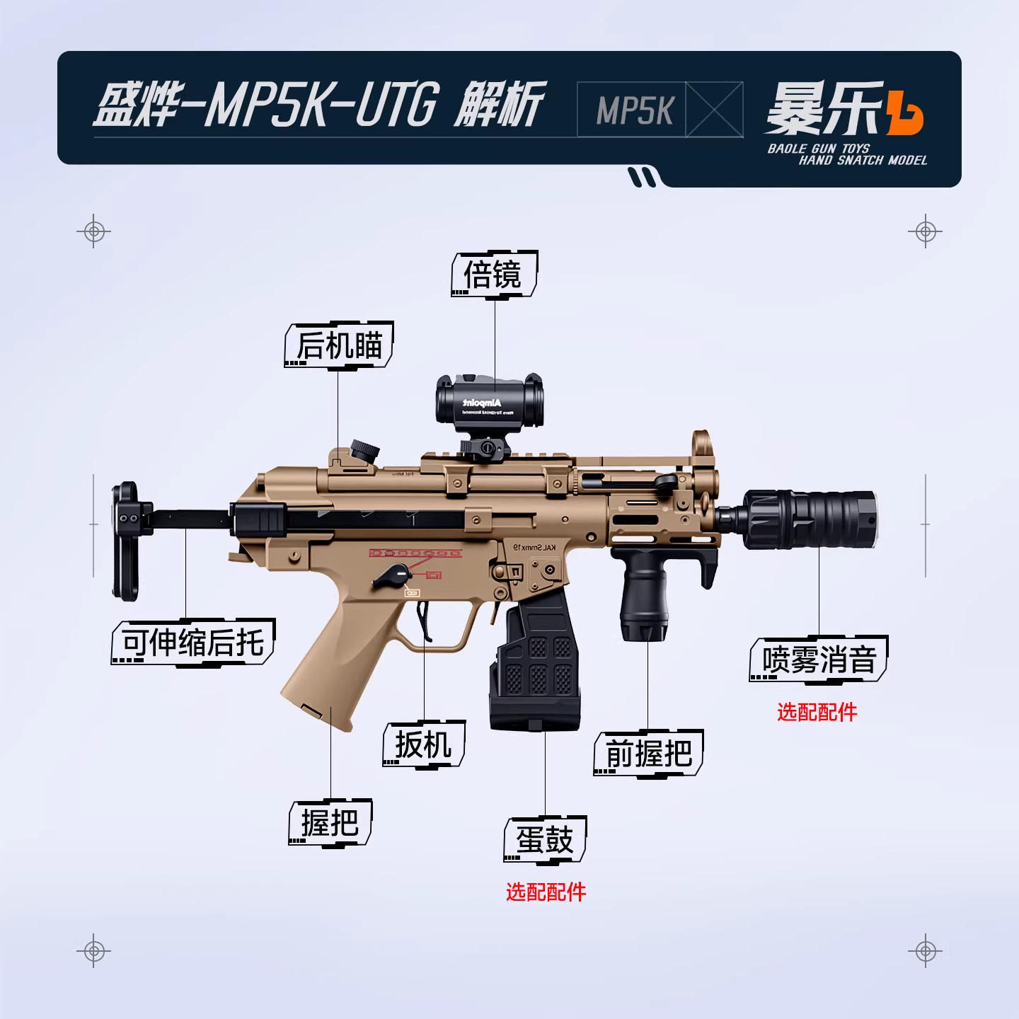 📚 盛烨MP5K-UTG现代化套件伸缩托冲锋电动连发cs模型发射器玩具枪