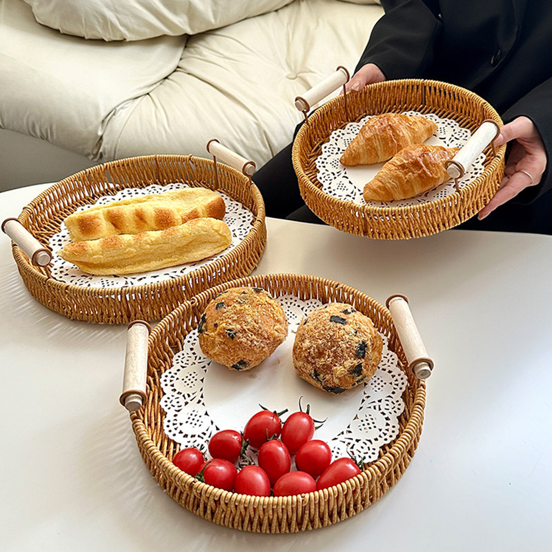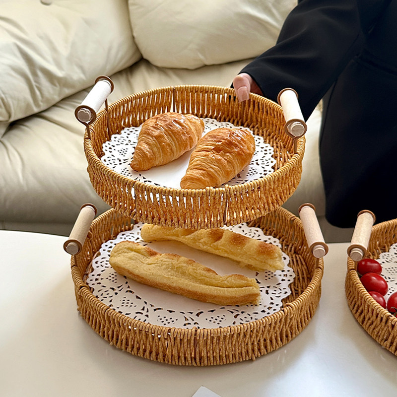 💥零食盛宴!心茶点水果篮,仿藤编托盘,家居新宠🎉