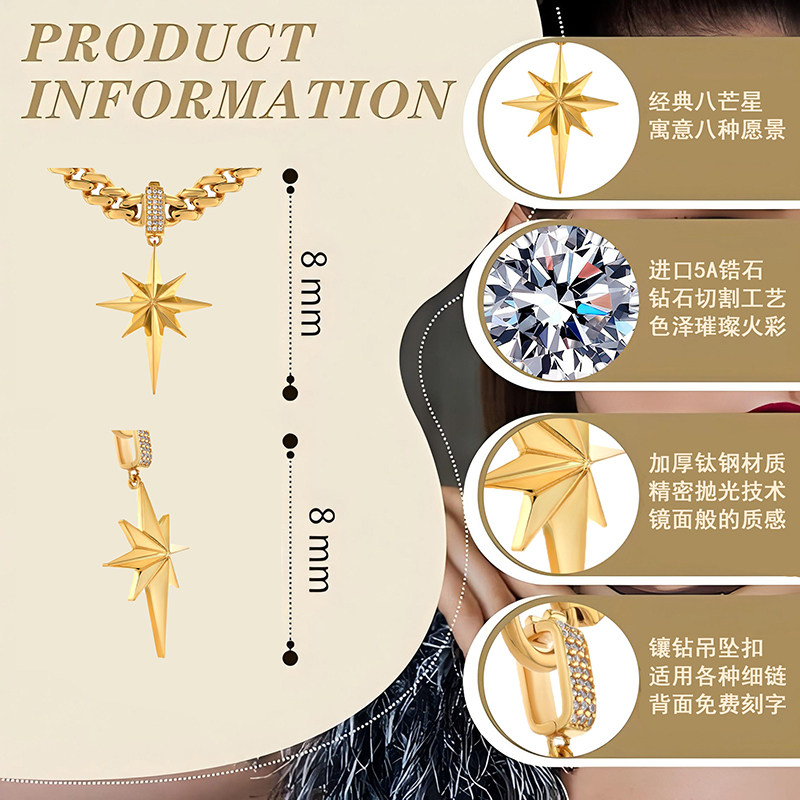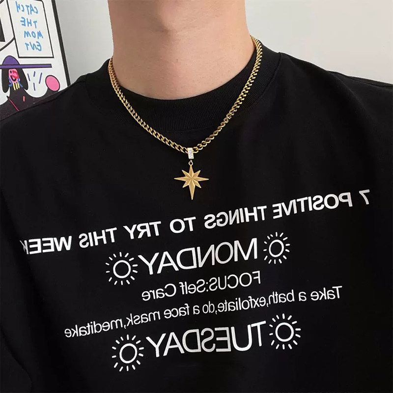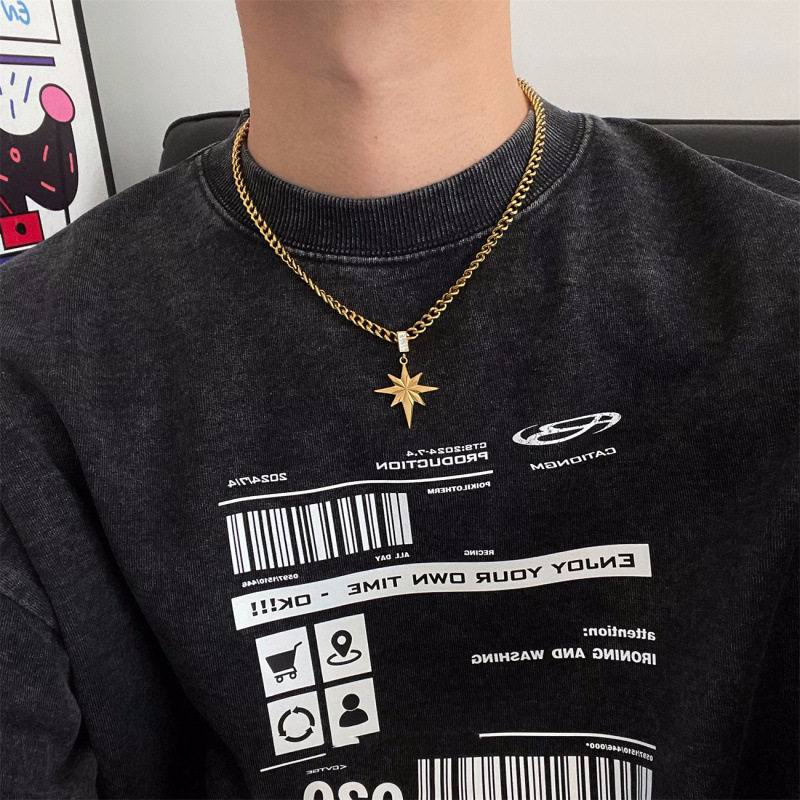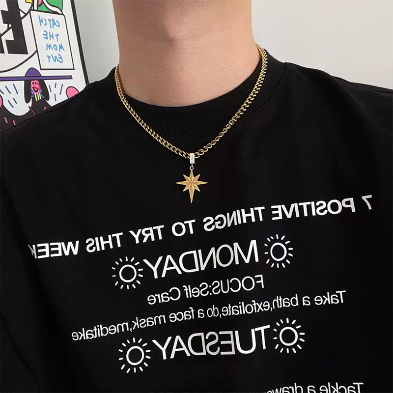 📚 官方王一博同款八芒星枫叶项链男钛钢不掉色潮牌小众设计感锁骨链