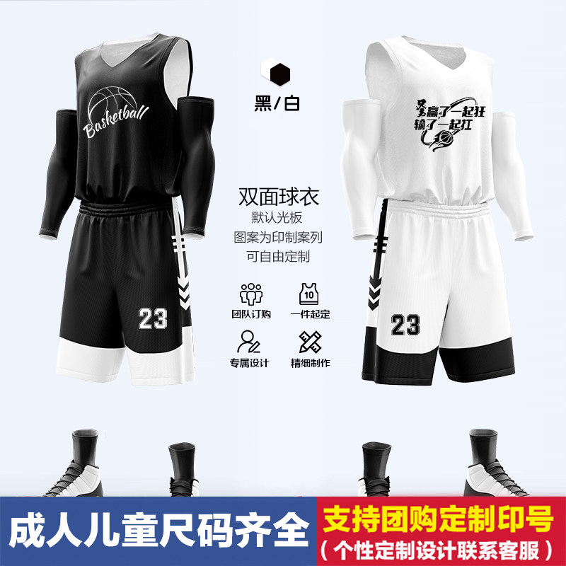 📚 双面篮球服男套装美式麦蒂球衣纯黑纯白篮球单招考试训练服双面穿