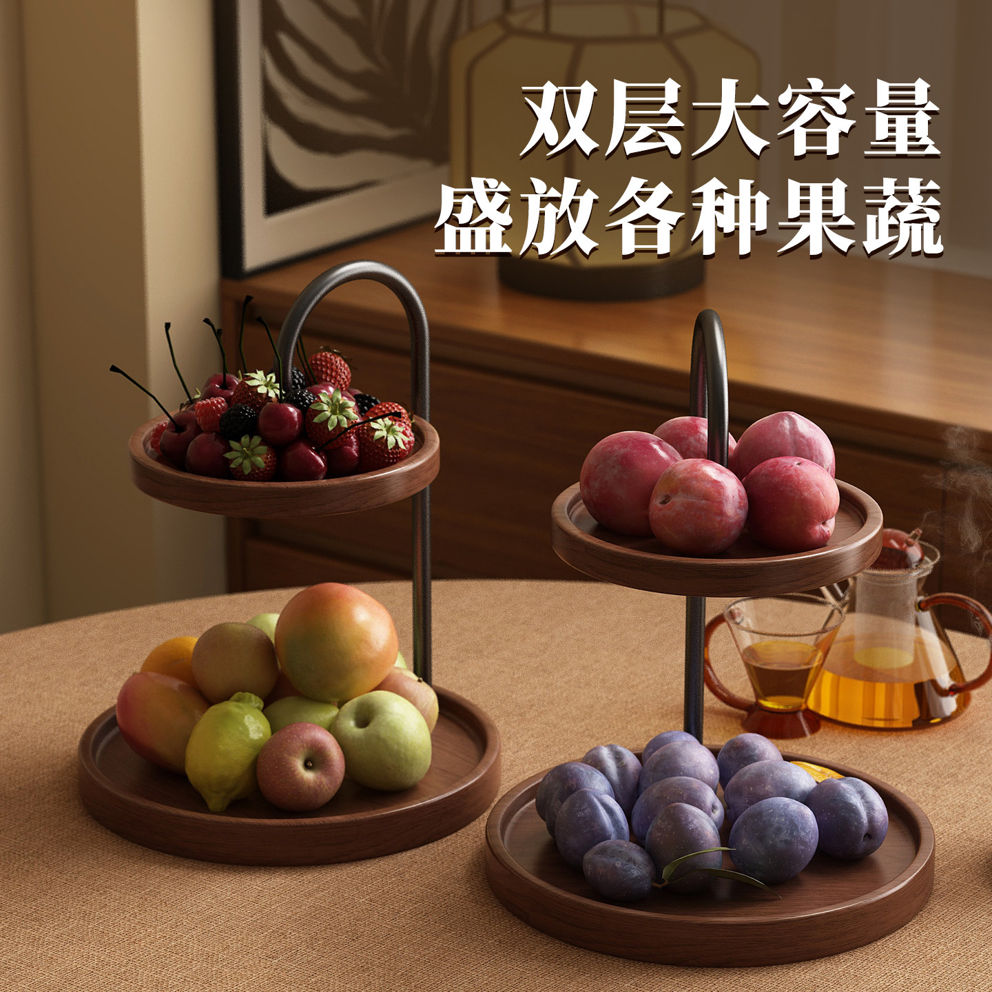 📚 实木果盘装饰摆件家用客厅茶几零食盘木质高级感双层点心水果托盘