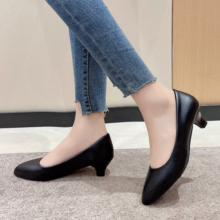 📚 空乘高跟鞋子女圆头公考面试黑色高铁学生礼仪空姐通勤职业工作鞋