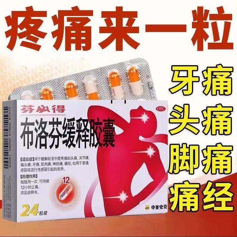 📚 芬必得 布洛芬缓释胶囊24粒布伦芬芬必得止痛片布诺 芬 缓释 胶囊