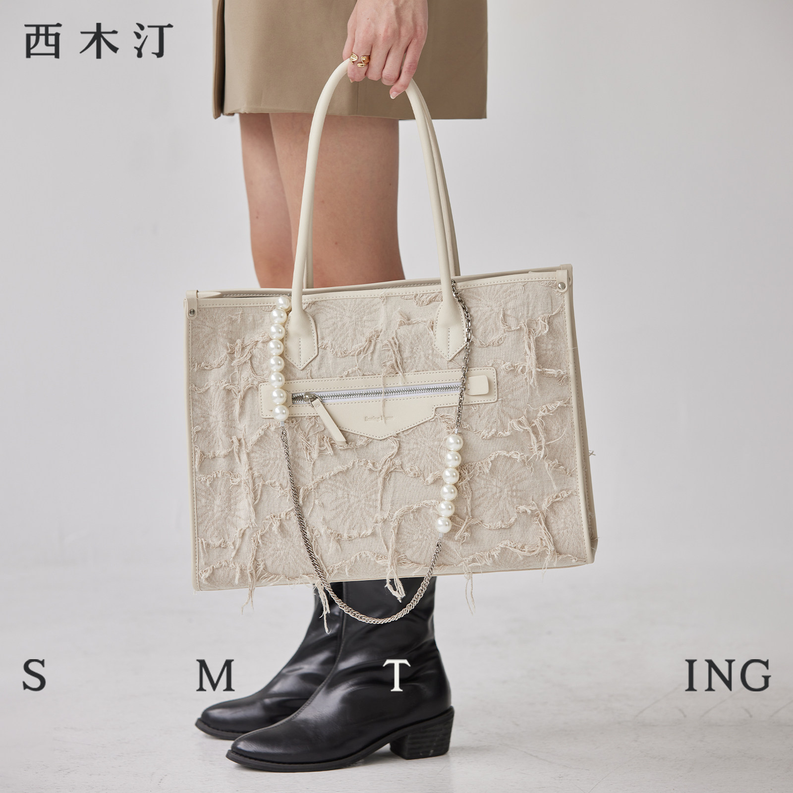 📚 西木汀暗香浮动 手提托特包女2026新款大容量包包小众单肩子母包