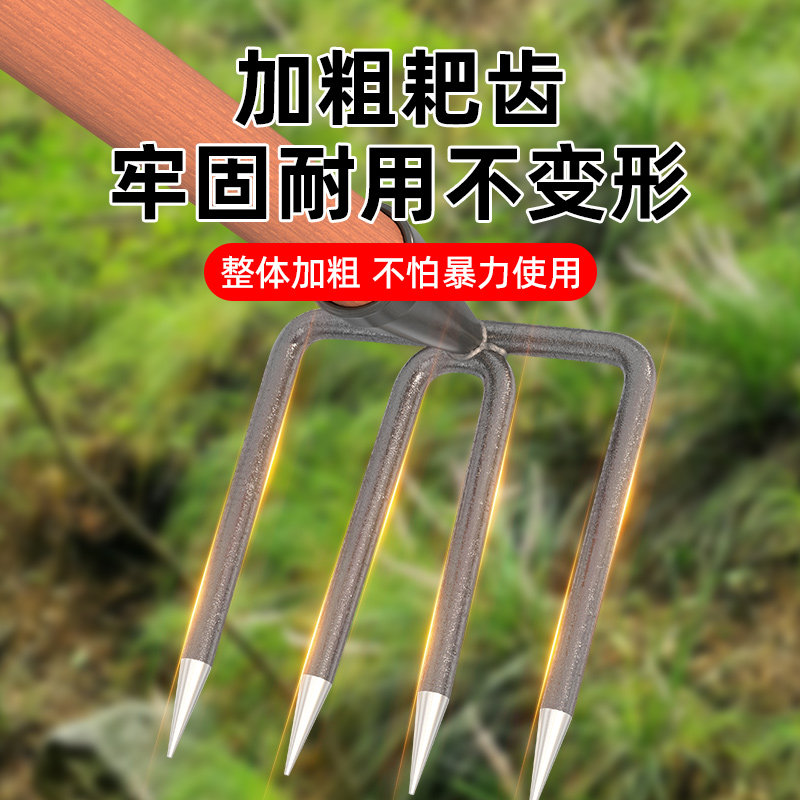 📚 锰钢抓钩三齿耙多功能刨地耙子农具农用抓口翻地松土神器四齿钉耙