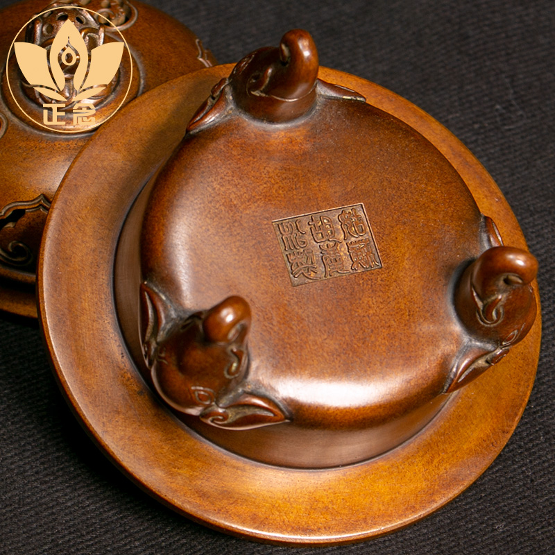 📚 庆松堂苏工铜炉名家胡庆松制紫铜三足象薰炉复古文房摆件家用熏香