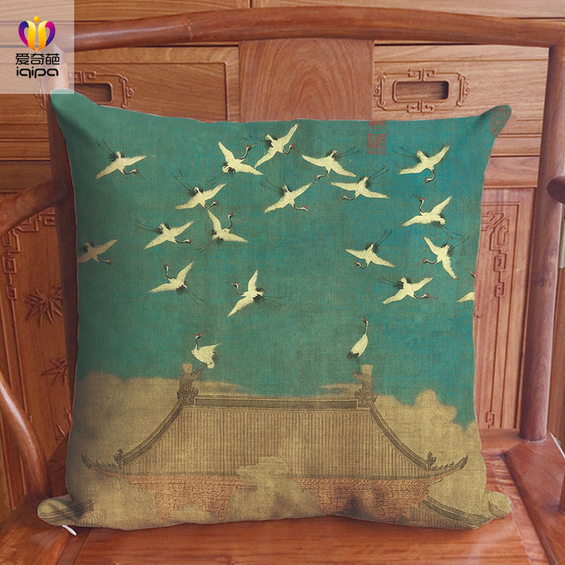 📚 瑞鹤图中式抱枕中国风沙发红木家具茶楼倚靠客厅靠垫亚麻飘窗靠枕