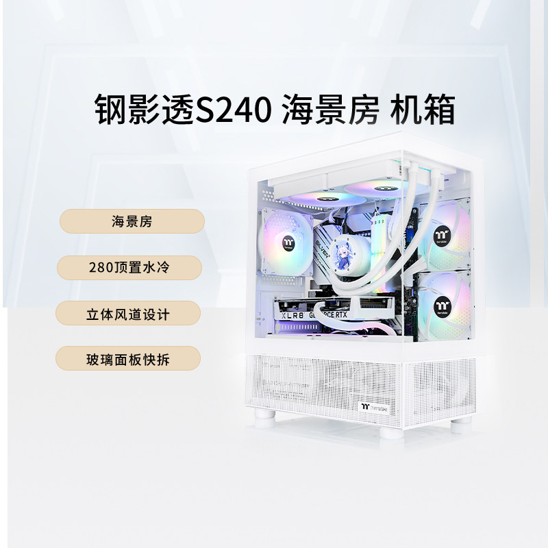 📚 TT 钢影透S240 海景房mini电脑机箱台式主机m-atx白色240水冷侧透