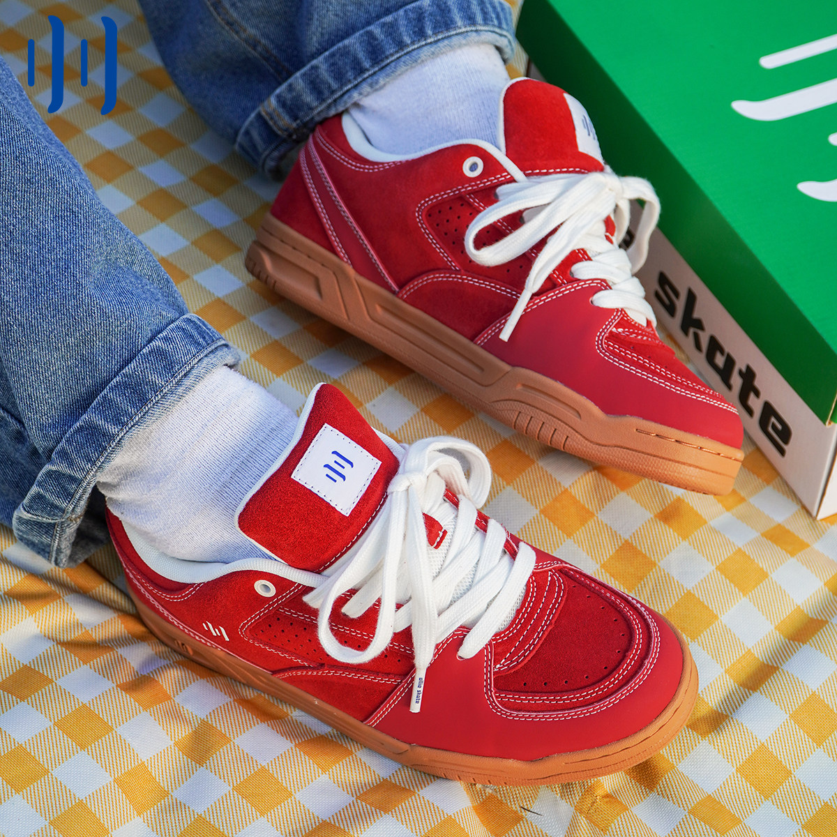 📚 顽刻ollieskate红色校园风空军一号复古休闲低帮男女国潮滑板鞋