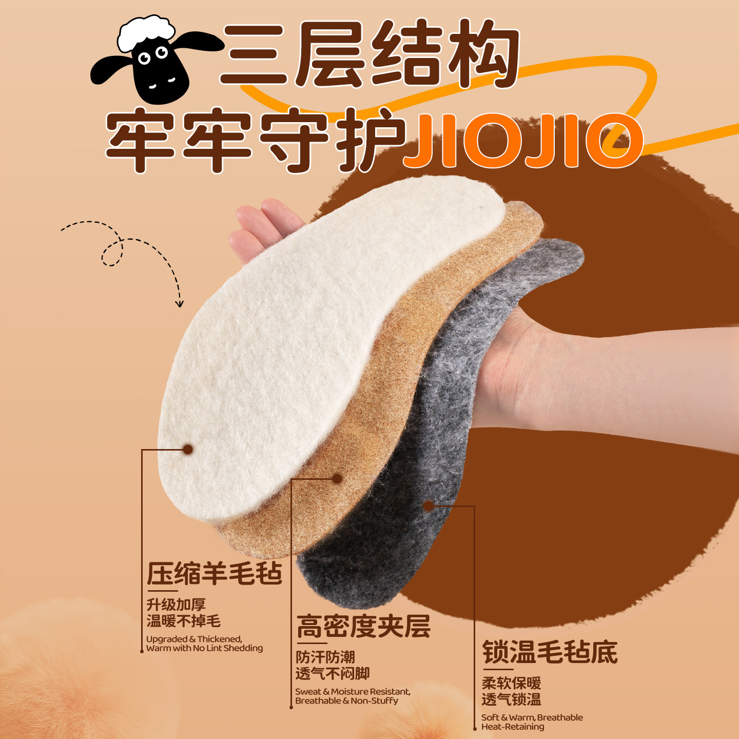 📚 足力健儿童羊毛保暖鞋垫冬季加绒加厚真羊毛毡小孩专用不冻脚棉鞋