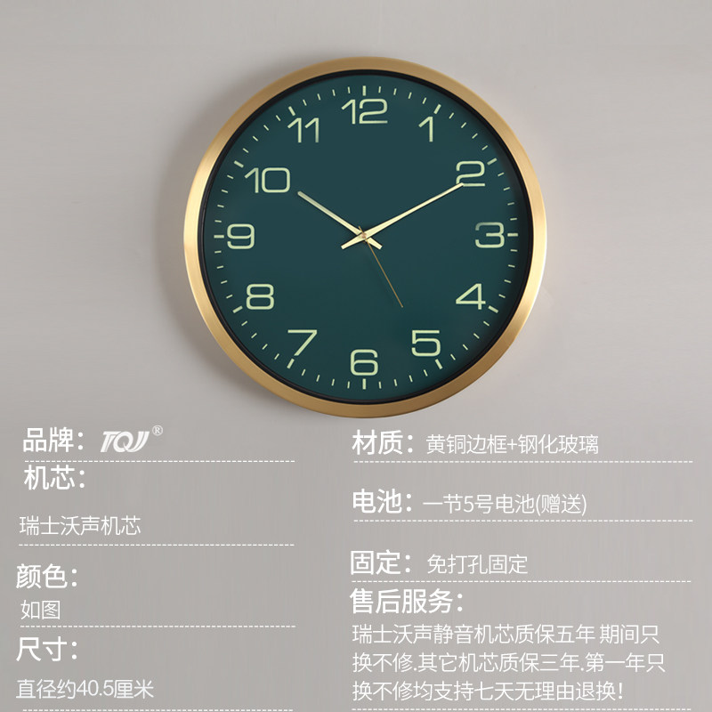 📚 TQJ轻奢黄铜夜光静音挂钟简约现代创意钟表客厅简约石英钟家用表