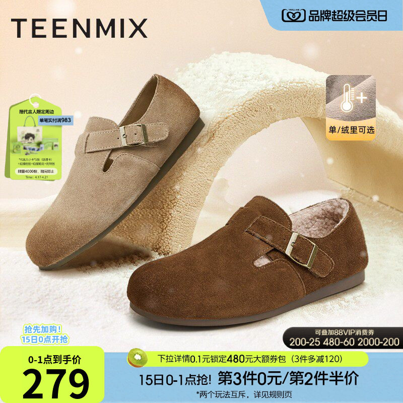 📚 天美意复古厚底勃肯鞋全包一脚蹬女鞋子新款休闲深口单鞋毛毛鞋