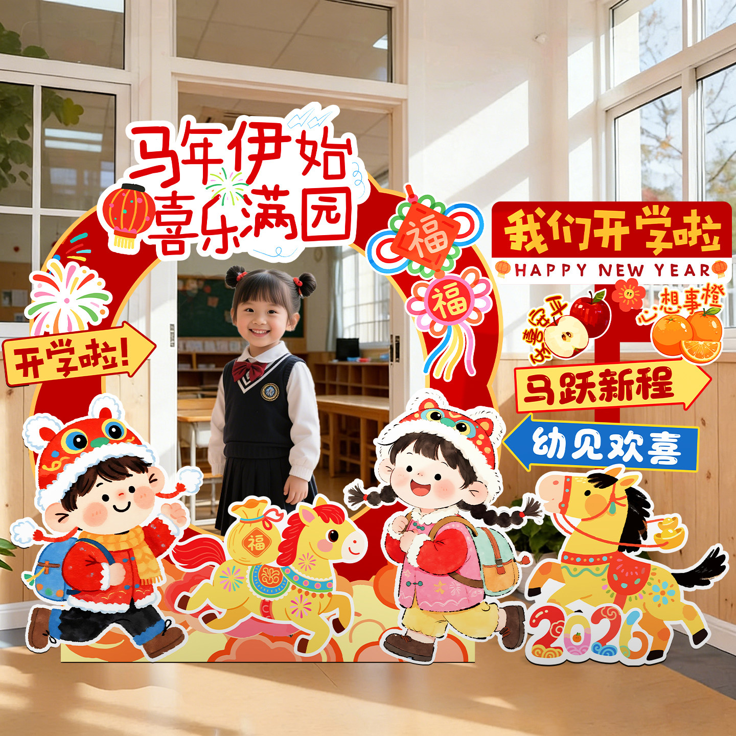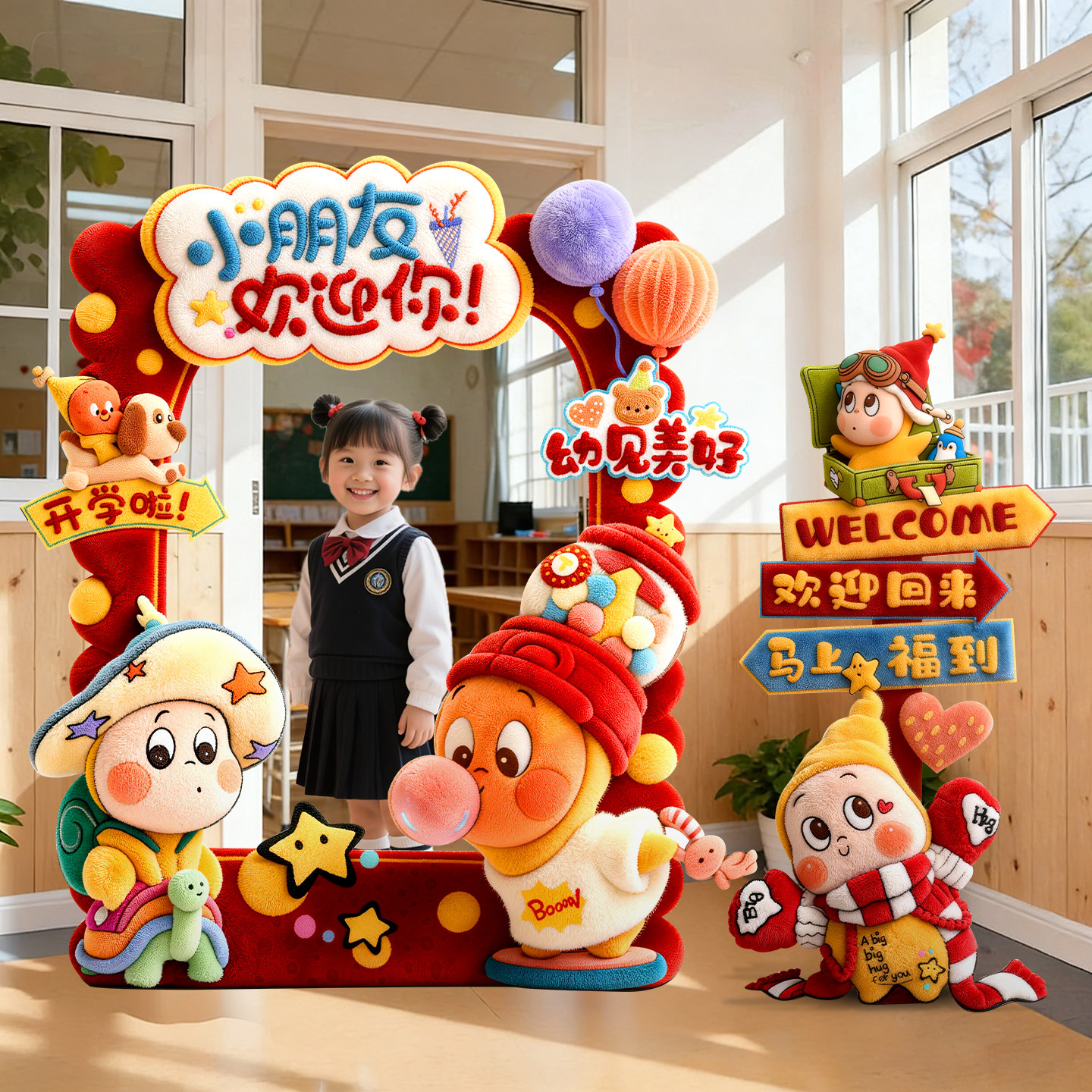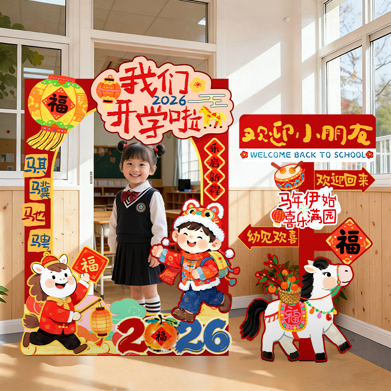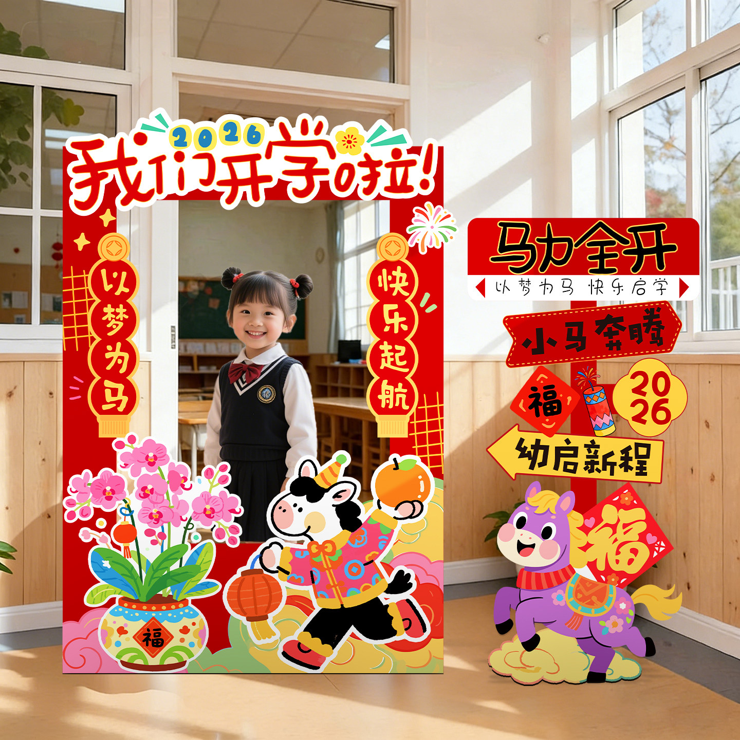 📚 幼儿园开学仪式感氛围布置场景装饰教室迎新学期打卡墙拍照框kt板