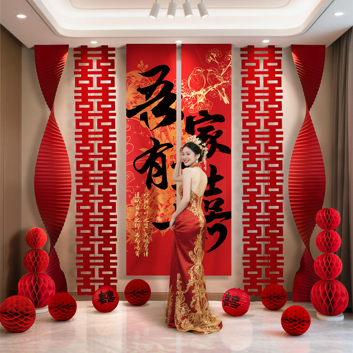 📚 婚房布置套装结婚房间窗帘装饰全套女方男方卧室客厅条幅喜字挂布