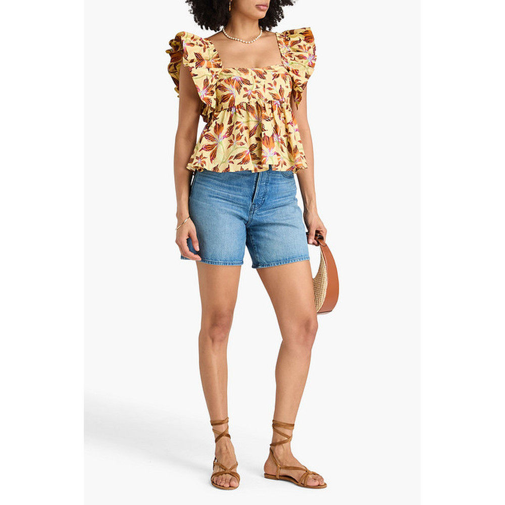 📚 1h可退 香港直邮潮奢 ULLA JOHNSON 女士 Romi 褶皱荷叶边印花棉