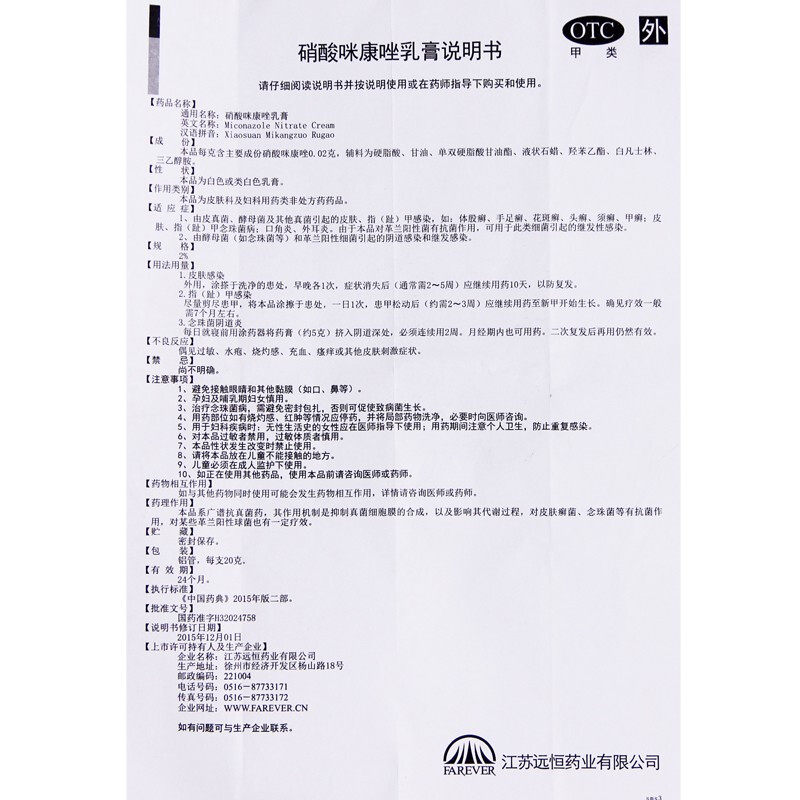 📚 远恒 硝酸咪康唑乳膏2%20g皮肤真菌病体股癣手足癣口角炎外耳炎