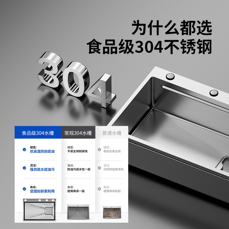 📚 SUS304不锈钢水槽单槽厨房洗菜盆免手抠集渣大单槽双槽改单槽专用