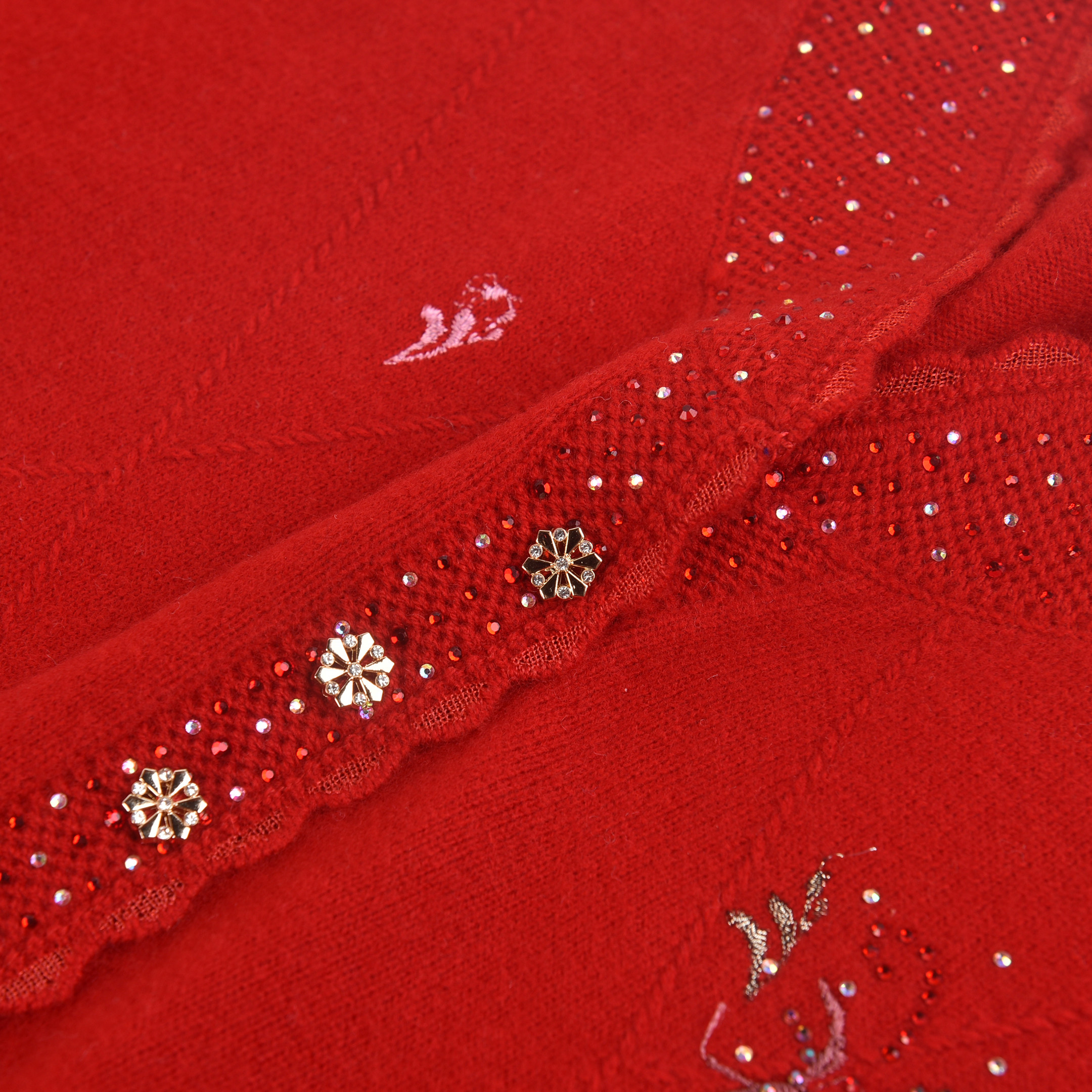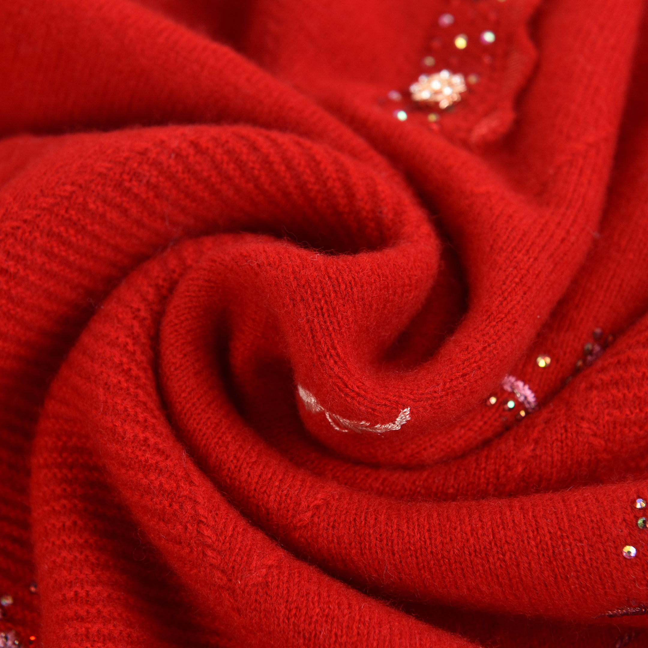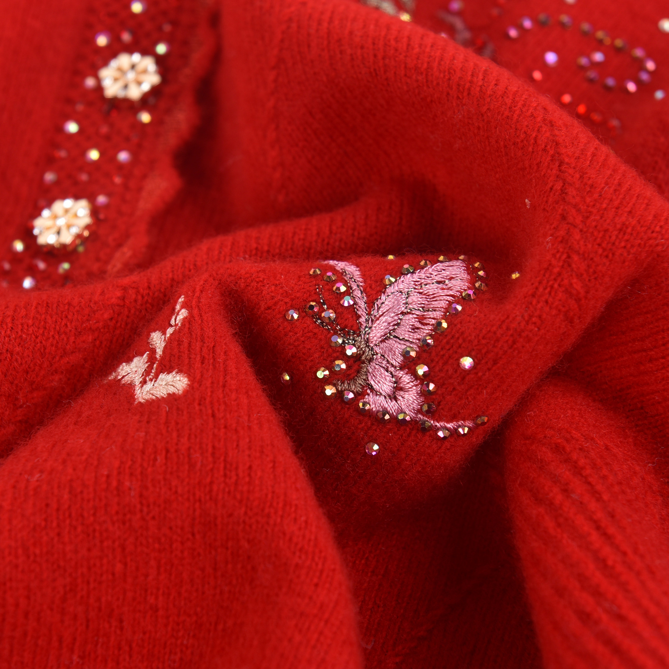 📚 妈妈纯羊毛衫中老年人女装秋冬婚礼服红色毛衣旗袍领打底衫新中式