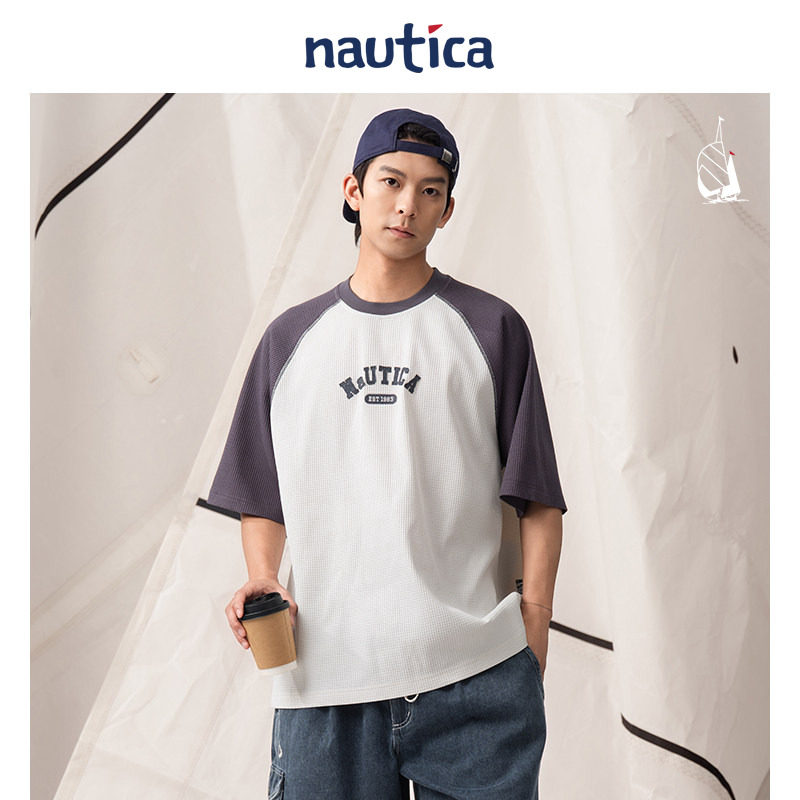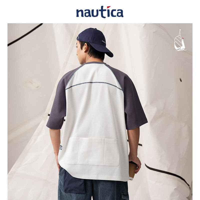 📚 【官方正品】nautica whitesail骑行贴袋华夫格撞色插肩袖短袖T恤