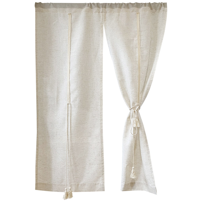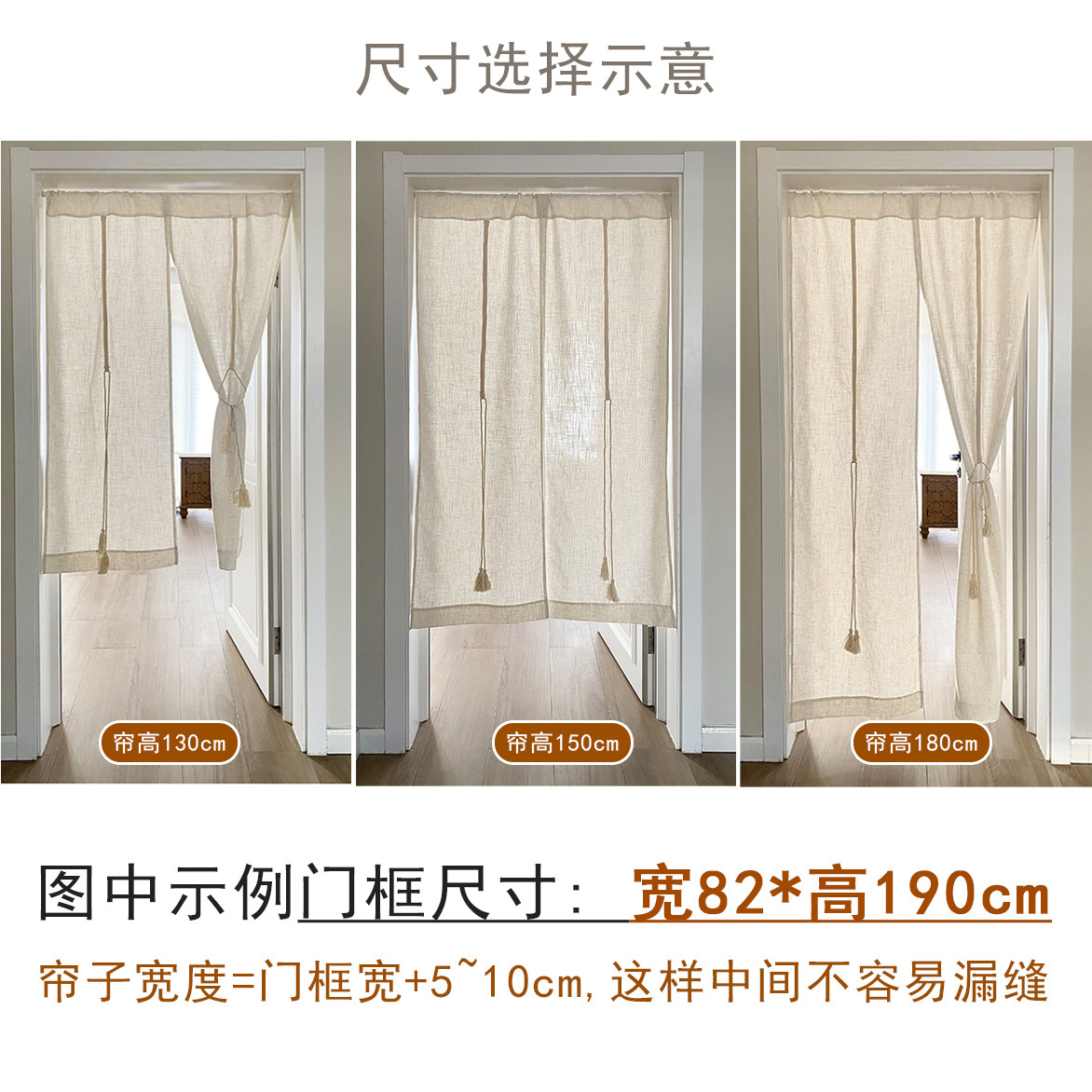 📚 日式亚麻素色分片米色门帘吊穗绑绳出租屋半帘卧室隔断短帘商用家