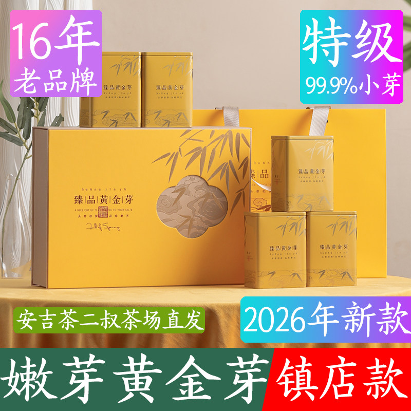📚 茶二叔黄金芽茶叶新款礼盒装正宗安吉250g新茶白茶茶叶特级