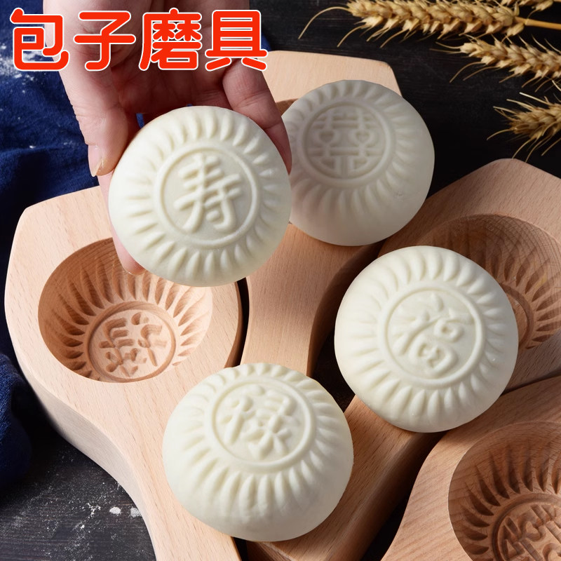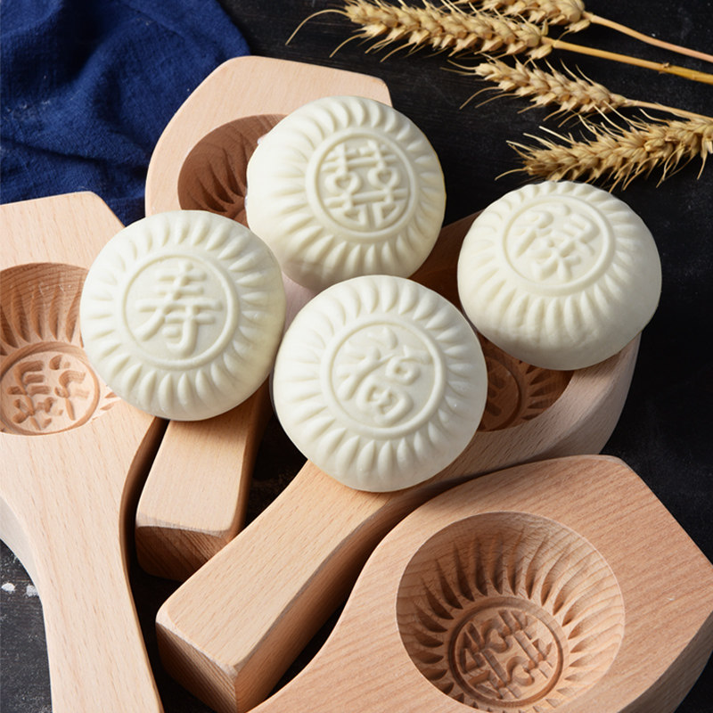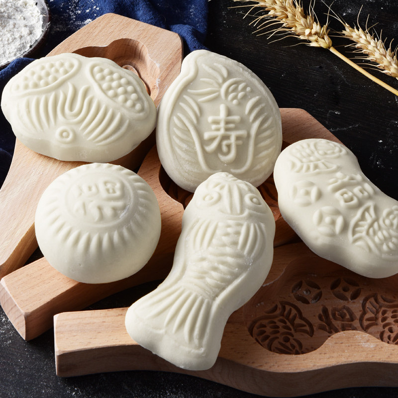 📚 手工包子模具面食花样鱼家用压模木质大号蒸馍花馍馍过年馒头模具