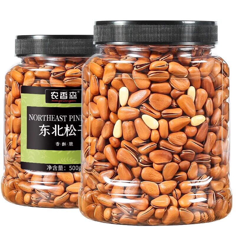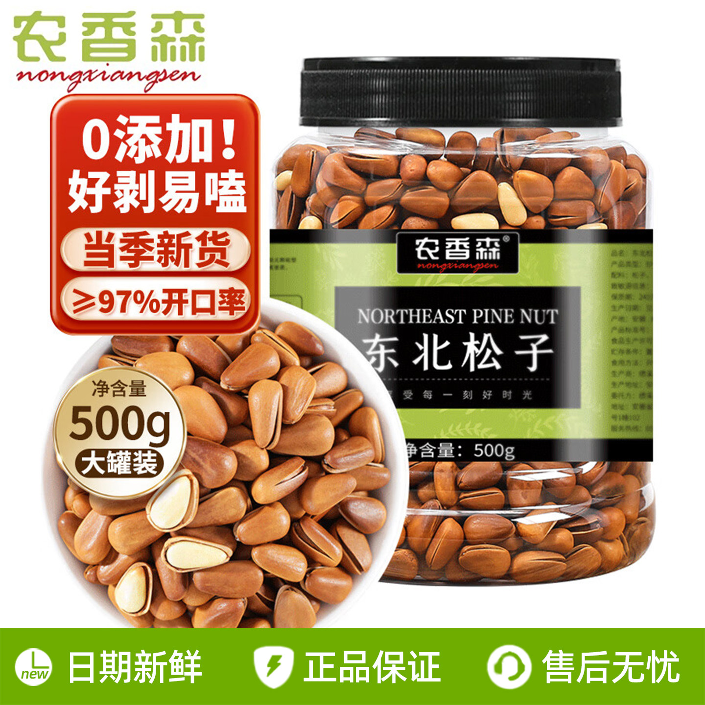 📚 农香森新货开口手剥东北松子大颗粒坚果罐装500g红松籽办公室零食