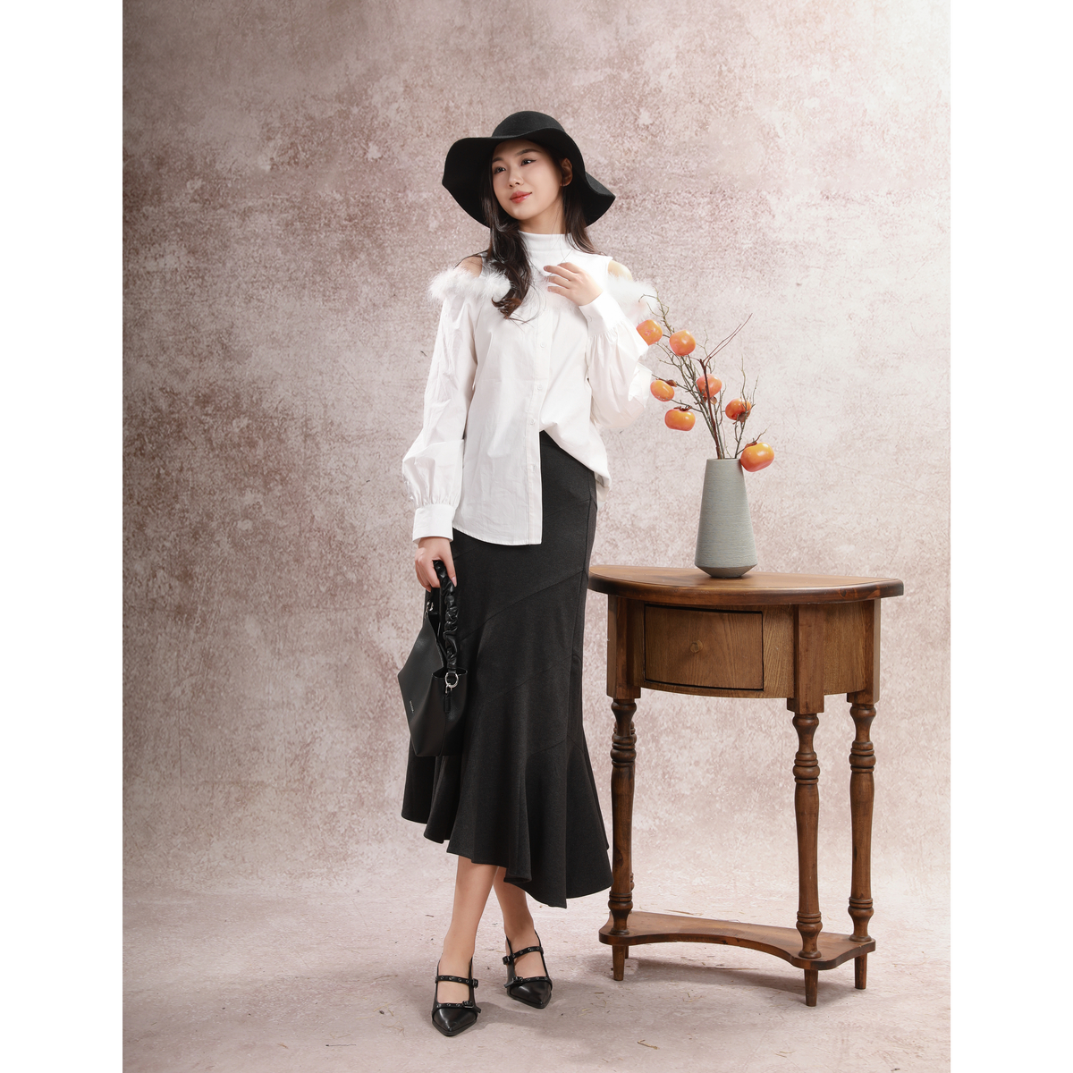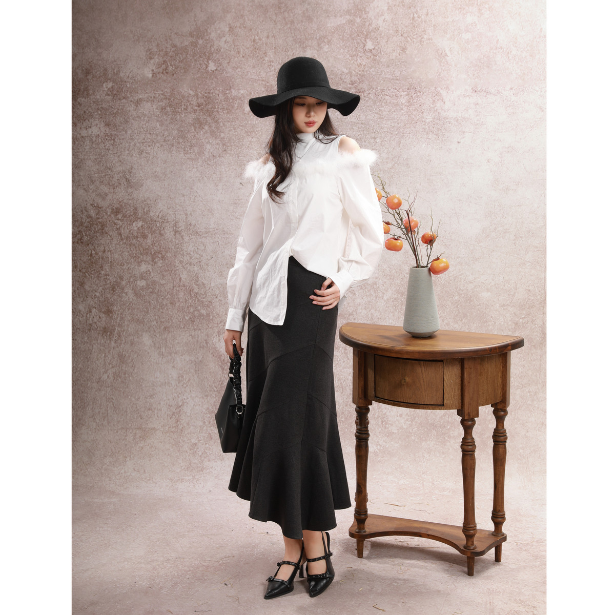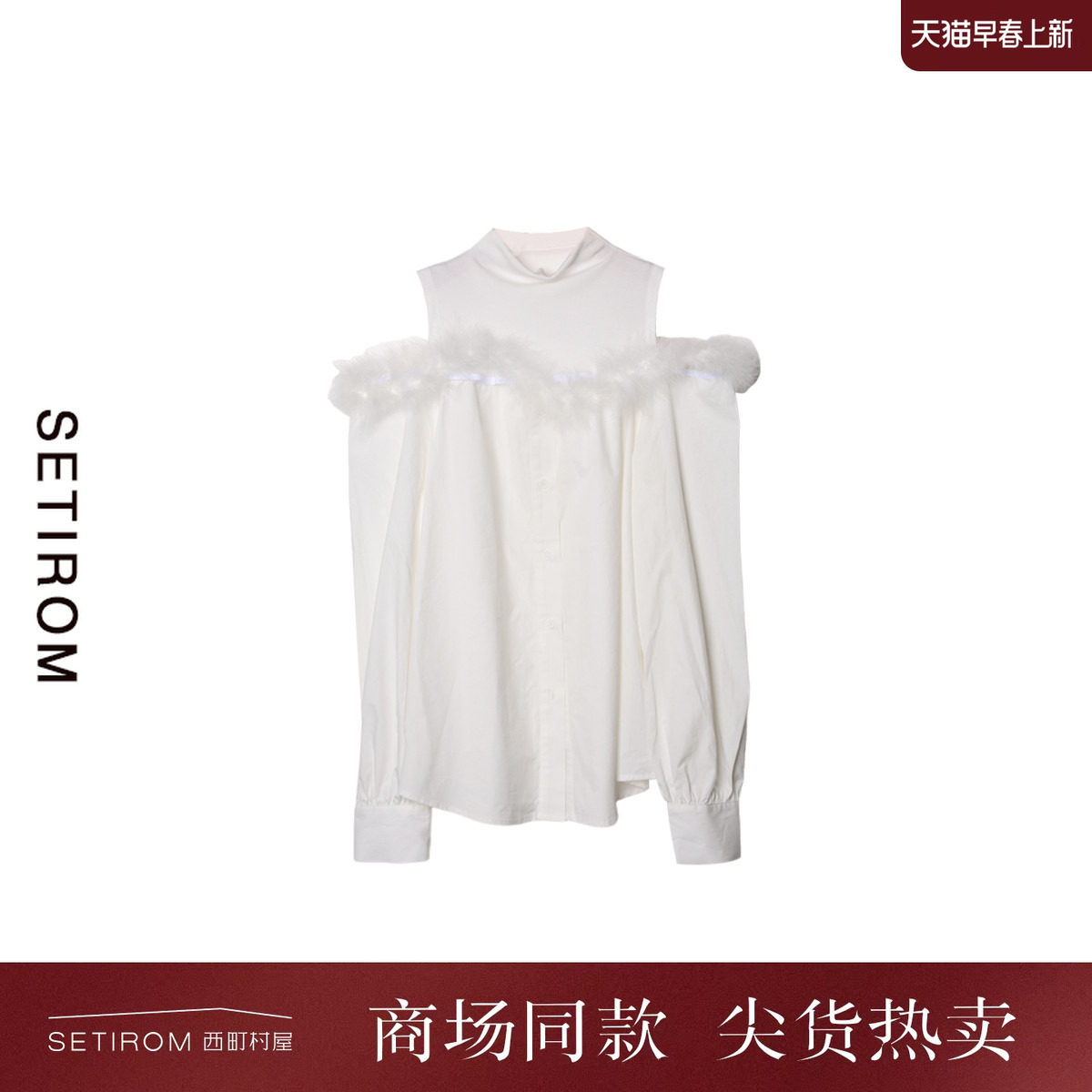 📚 西町村屋法式浪漫毛毛拼接小衫女秋季新款气质漏肩衬衣XH9C10150