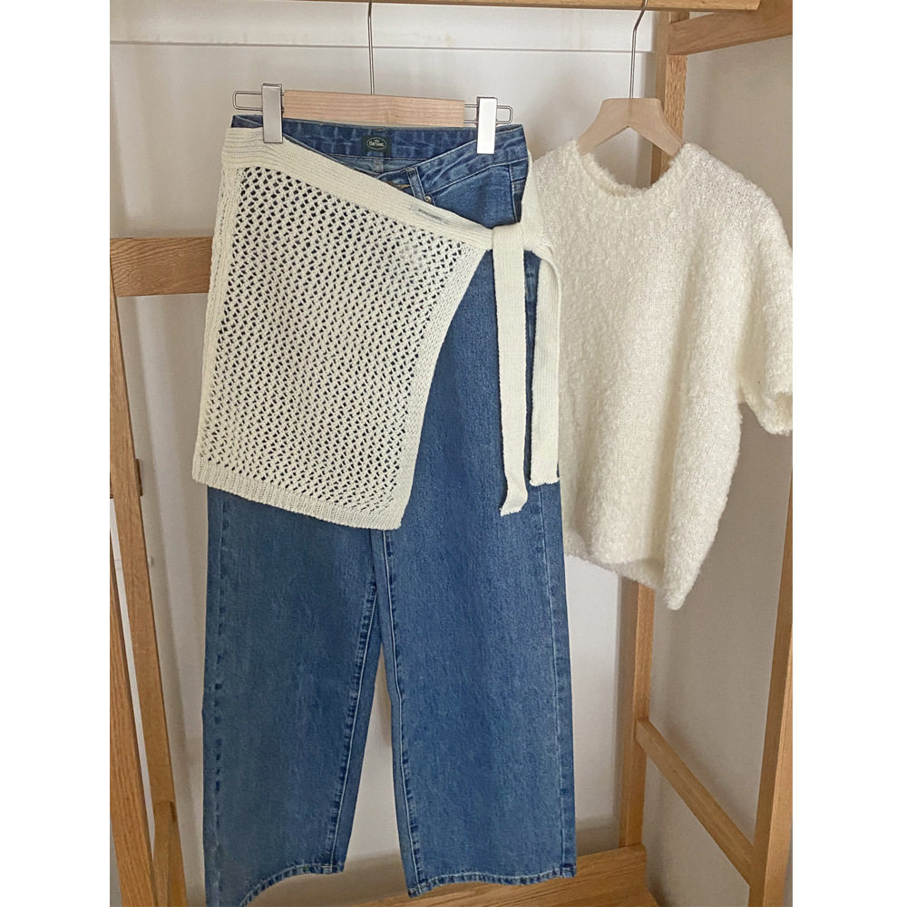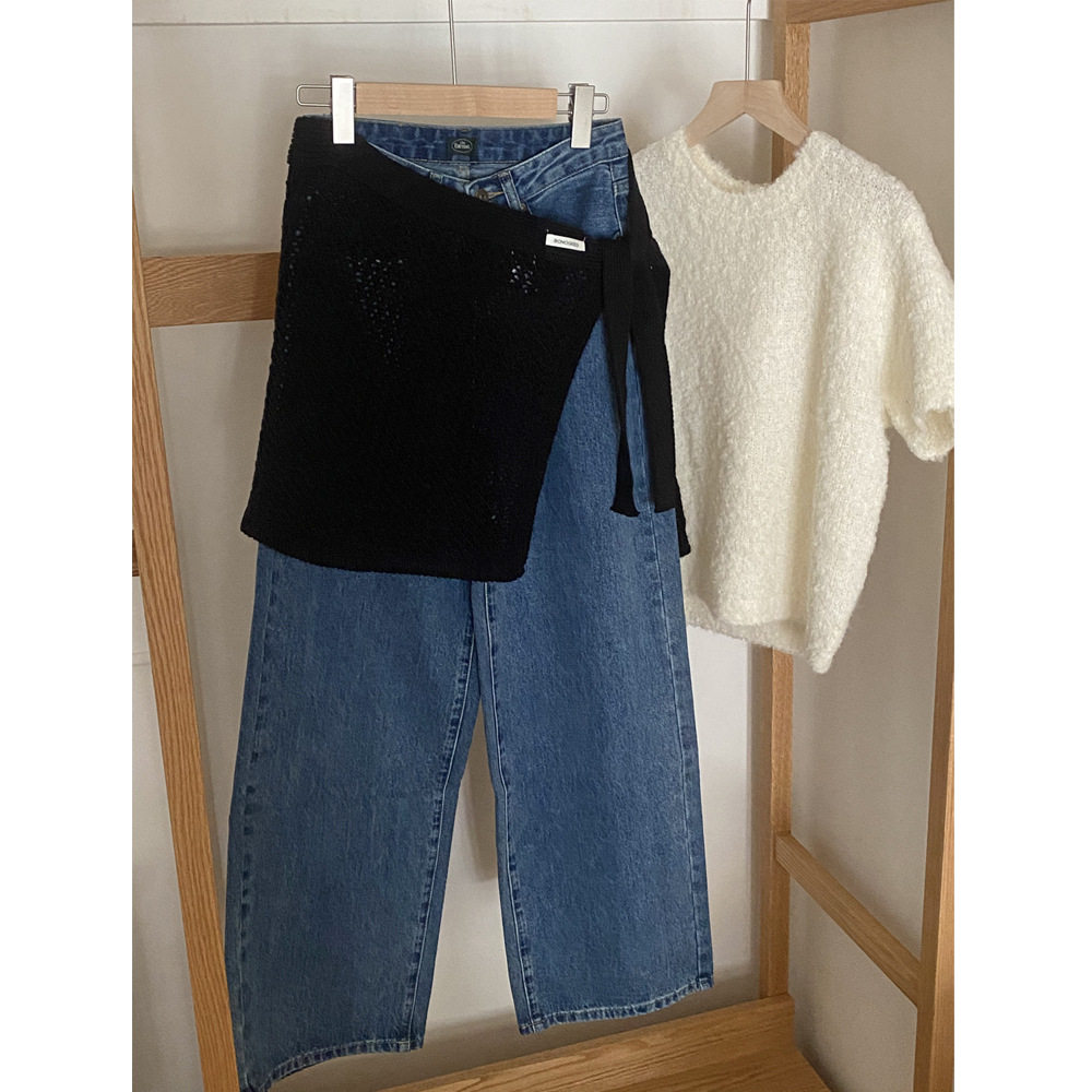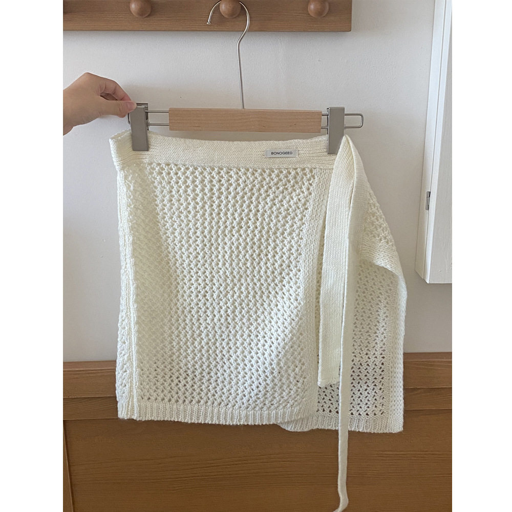 📚 韩国ins镂空羊毛针织绑带屁帘女时尚百搭叠穿遮臀显瘦半身裙搭配