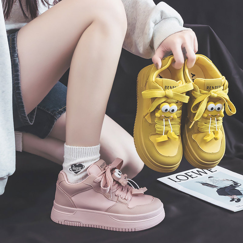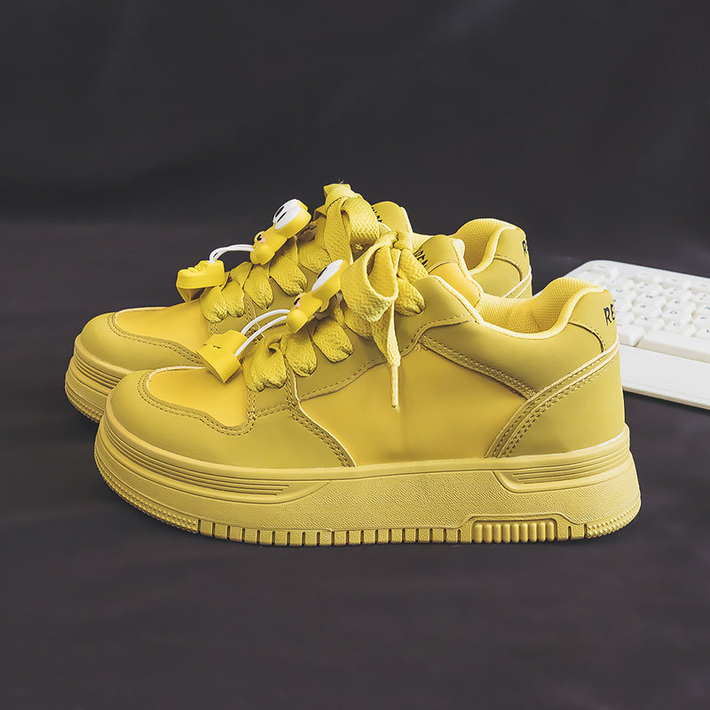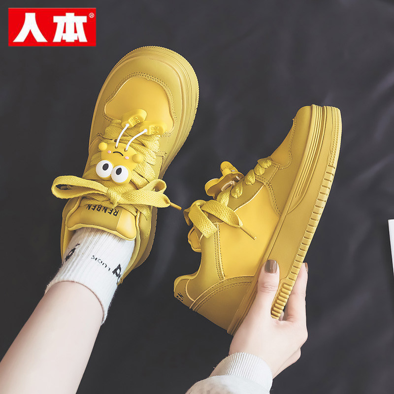📚 人本女鞋2026春季新款黄色休闲板鞋百搭透气厚底初中学生运动鞋子