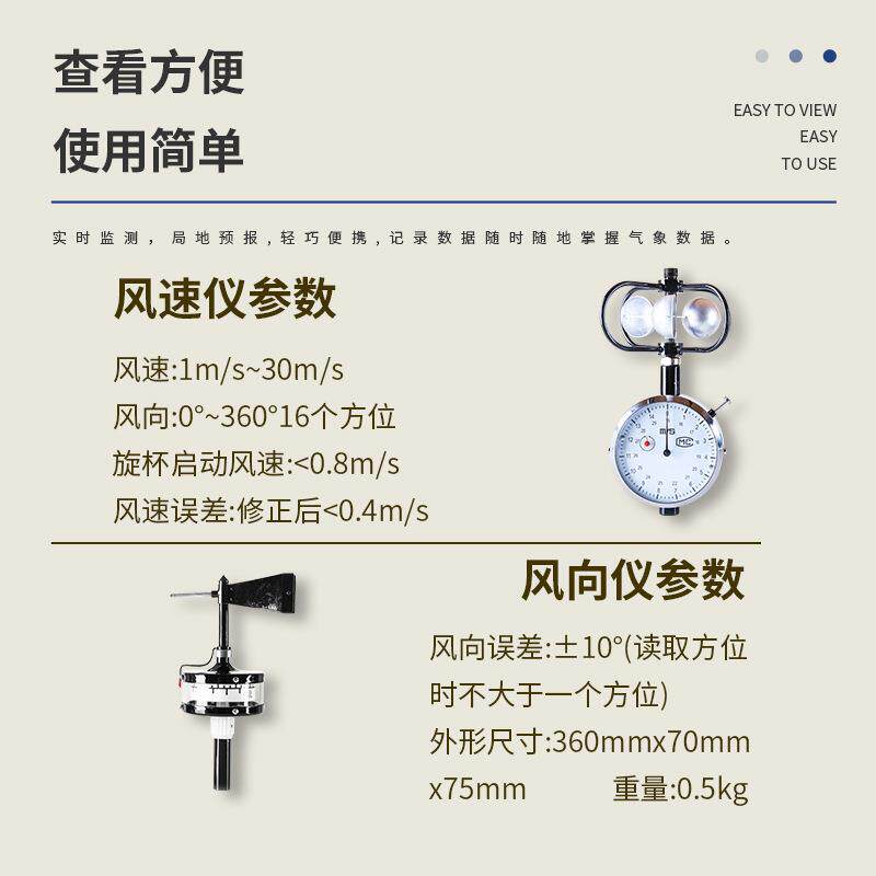 📚 DEM6型轻便三杯风向风速表船用三杯风速仪轻便三杯表手持式气象站