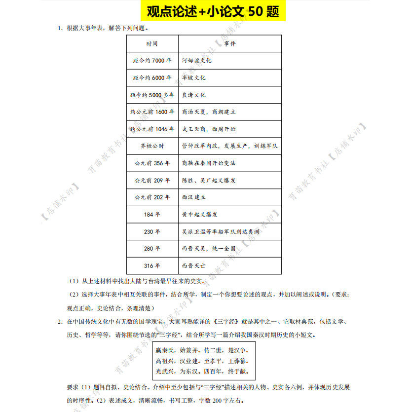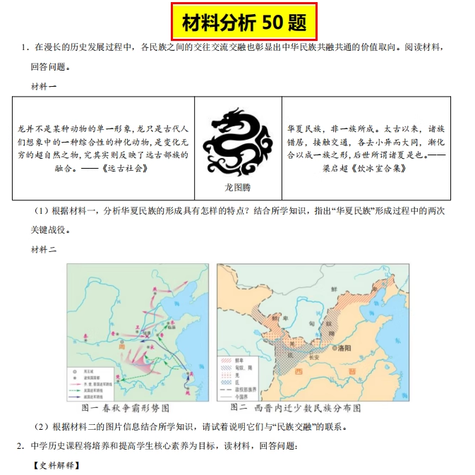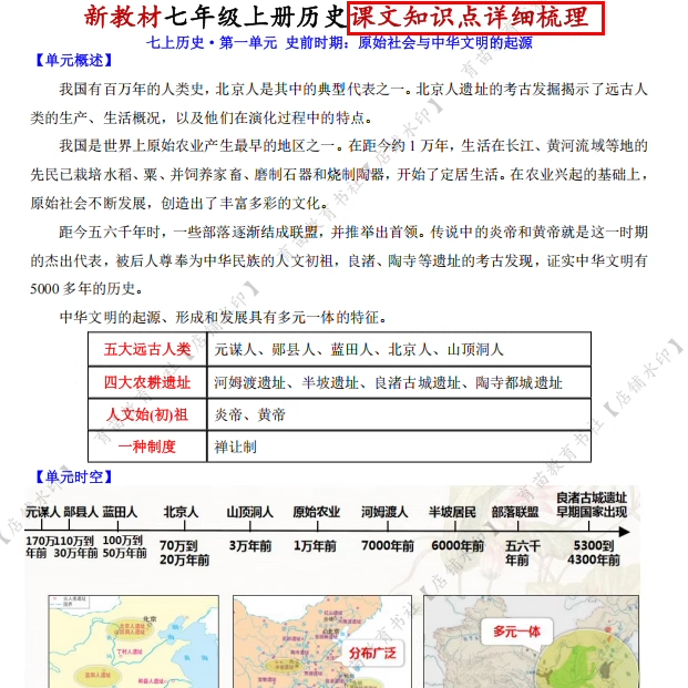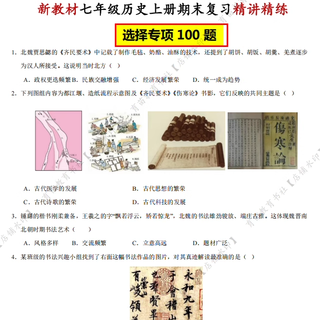 📚 新版七年级上册历史期中末单项选择题材料论述题易错必刷强化训练
