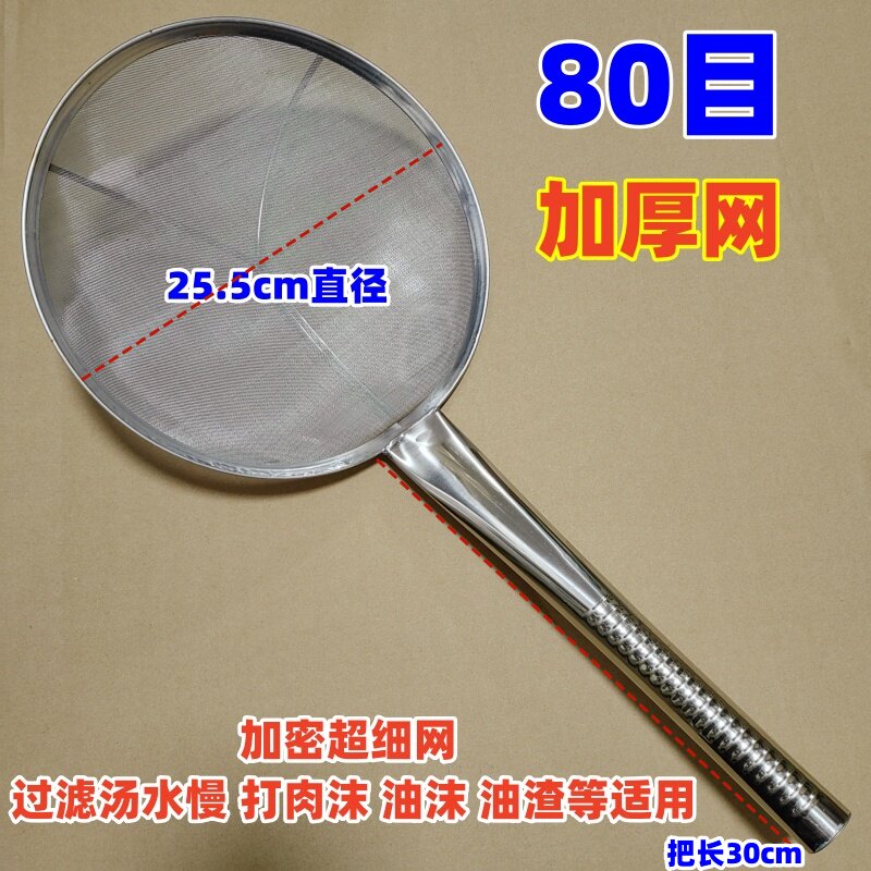 📚 商用漏勺80目超细加密厚网筛滤油渣子网捞撇油沫打沫不锈钢过滤网