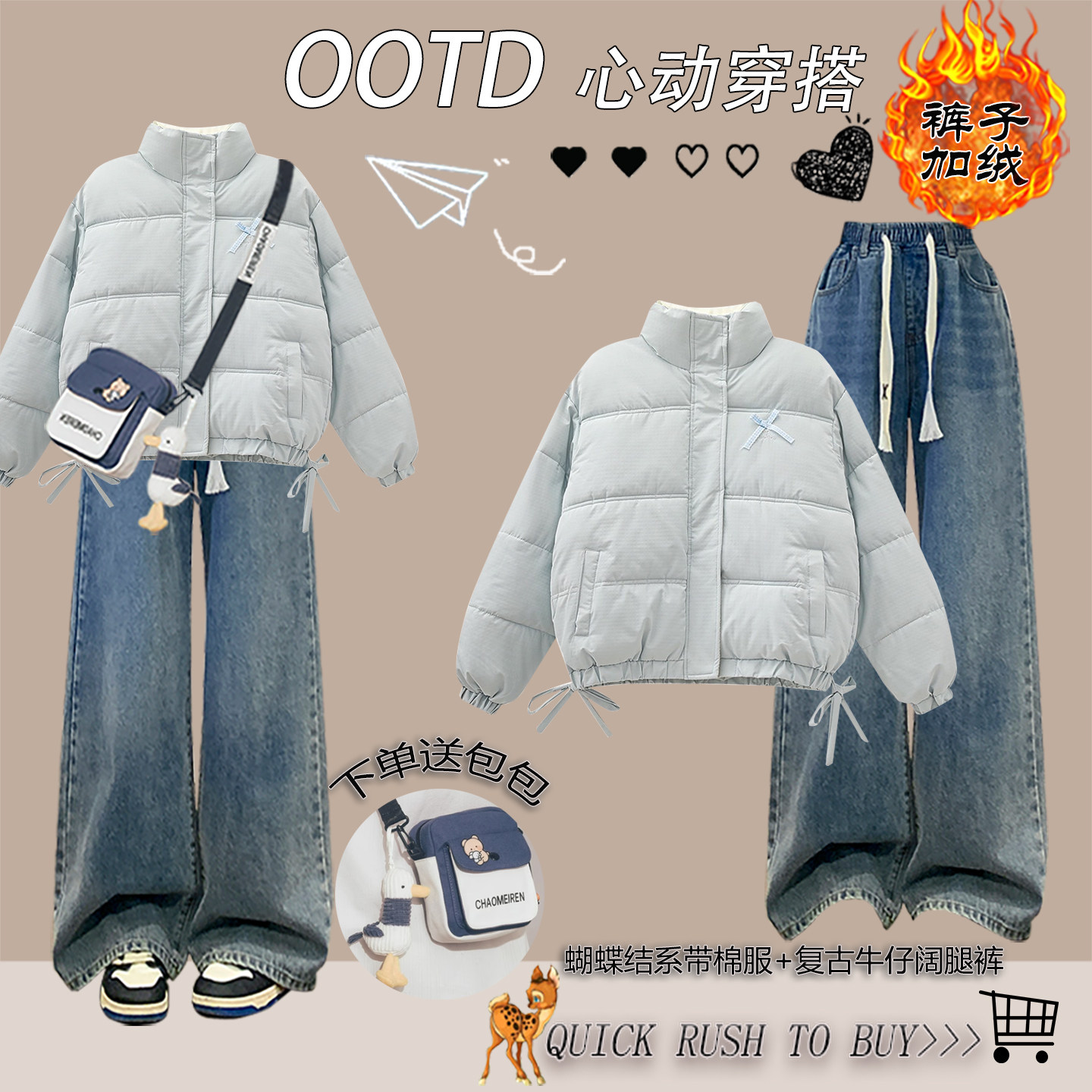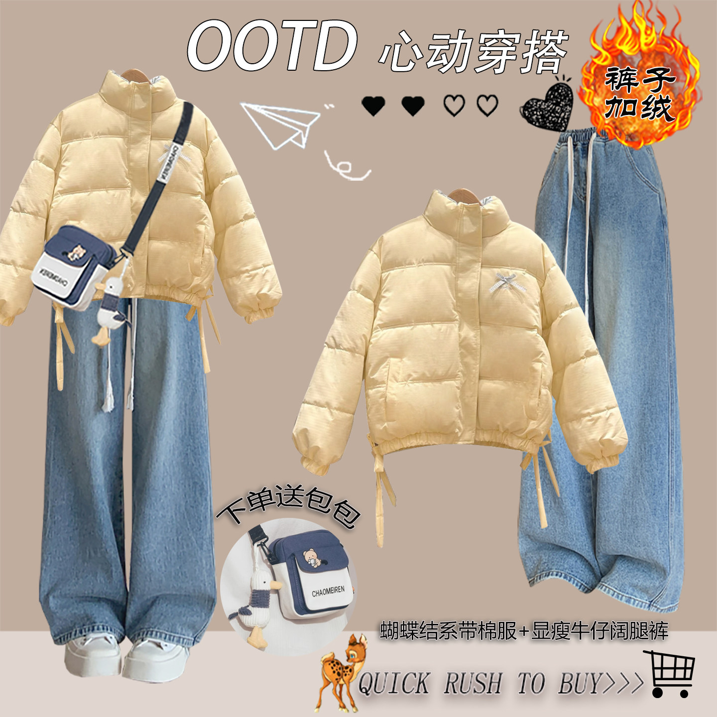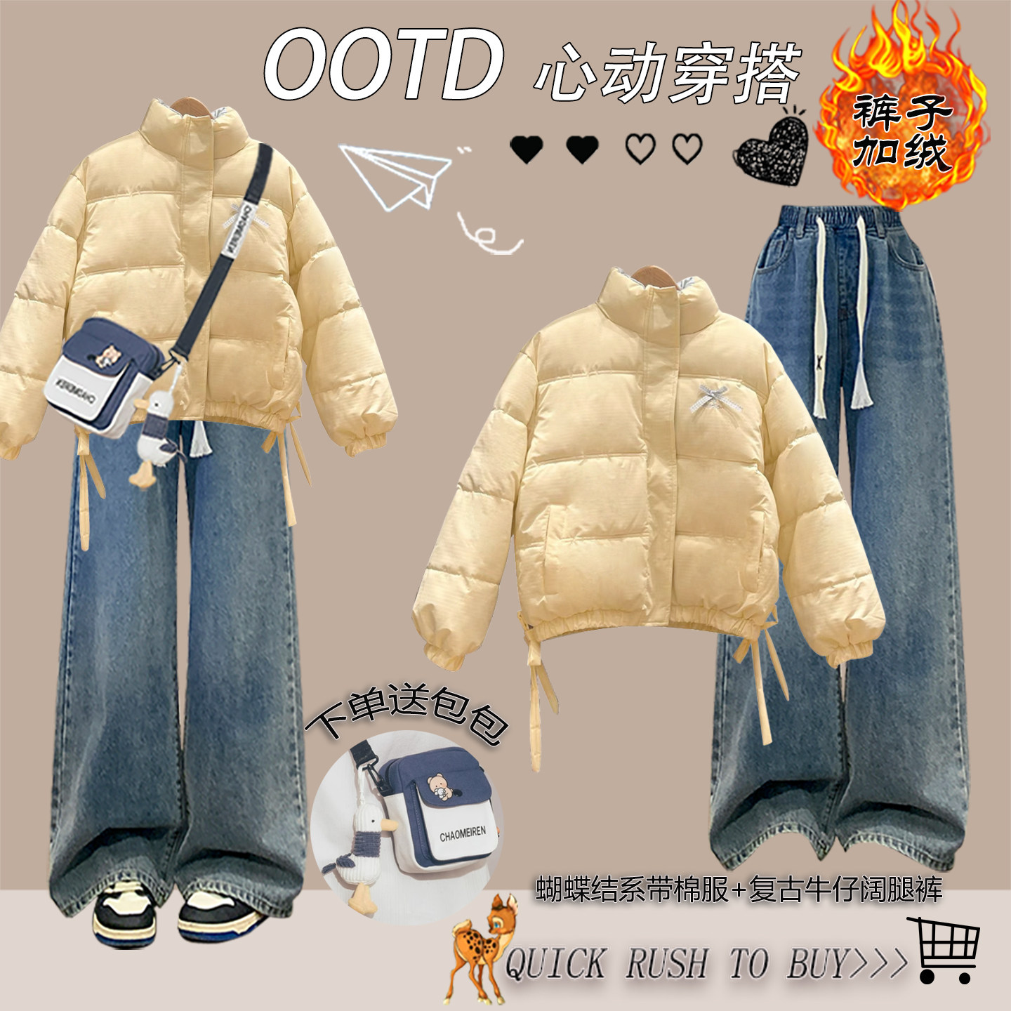 💓种草!2025年冬新款初高中学生甜美保暖蝴蝶结羽绒棉服棉袄,券后价仅需73.3!