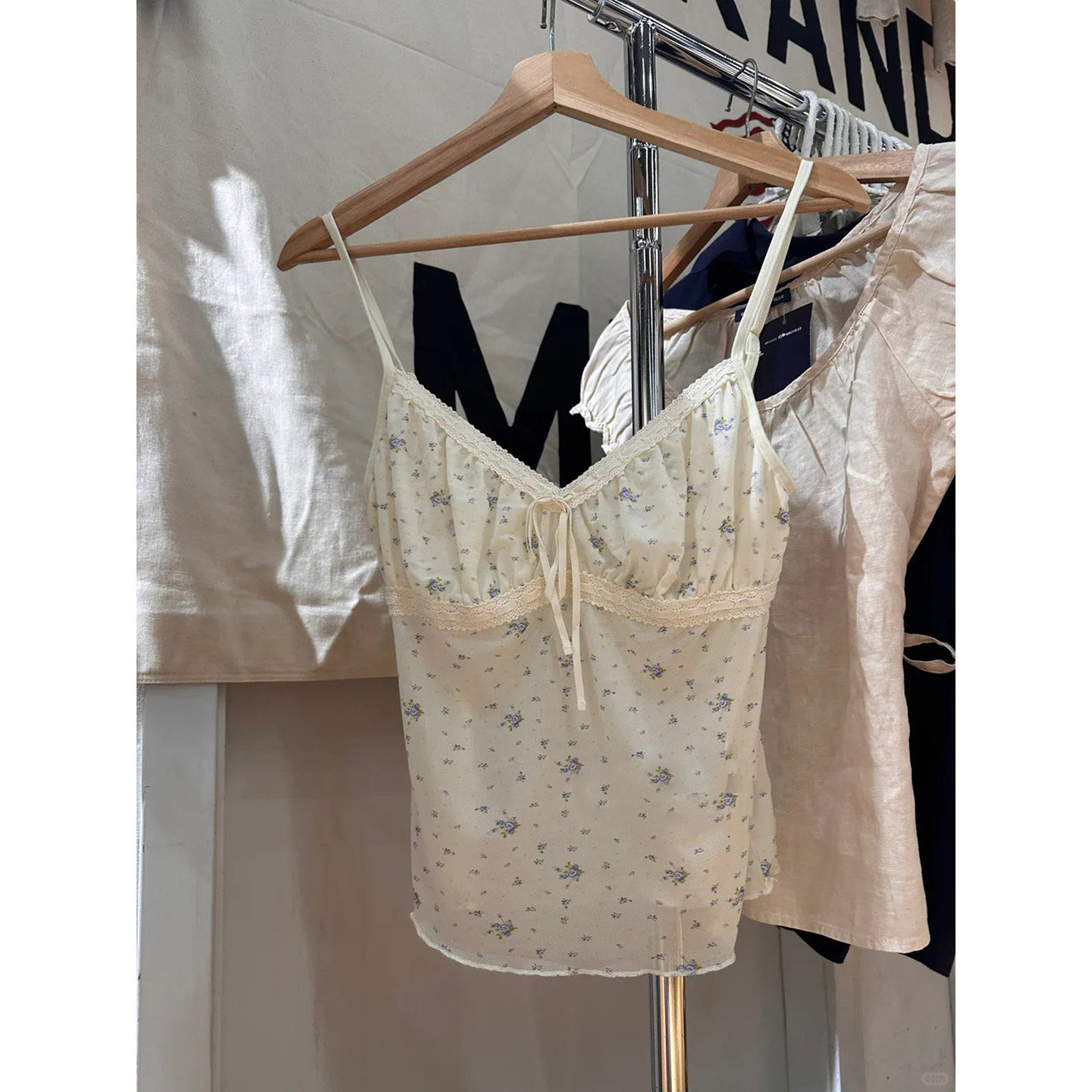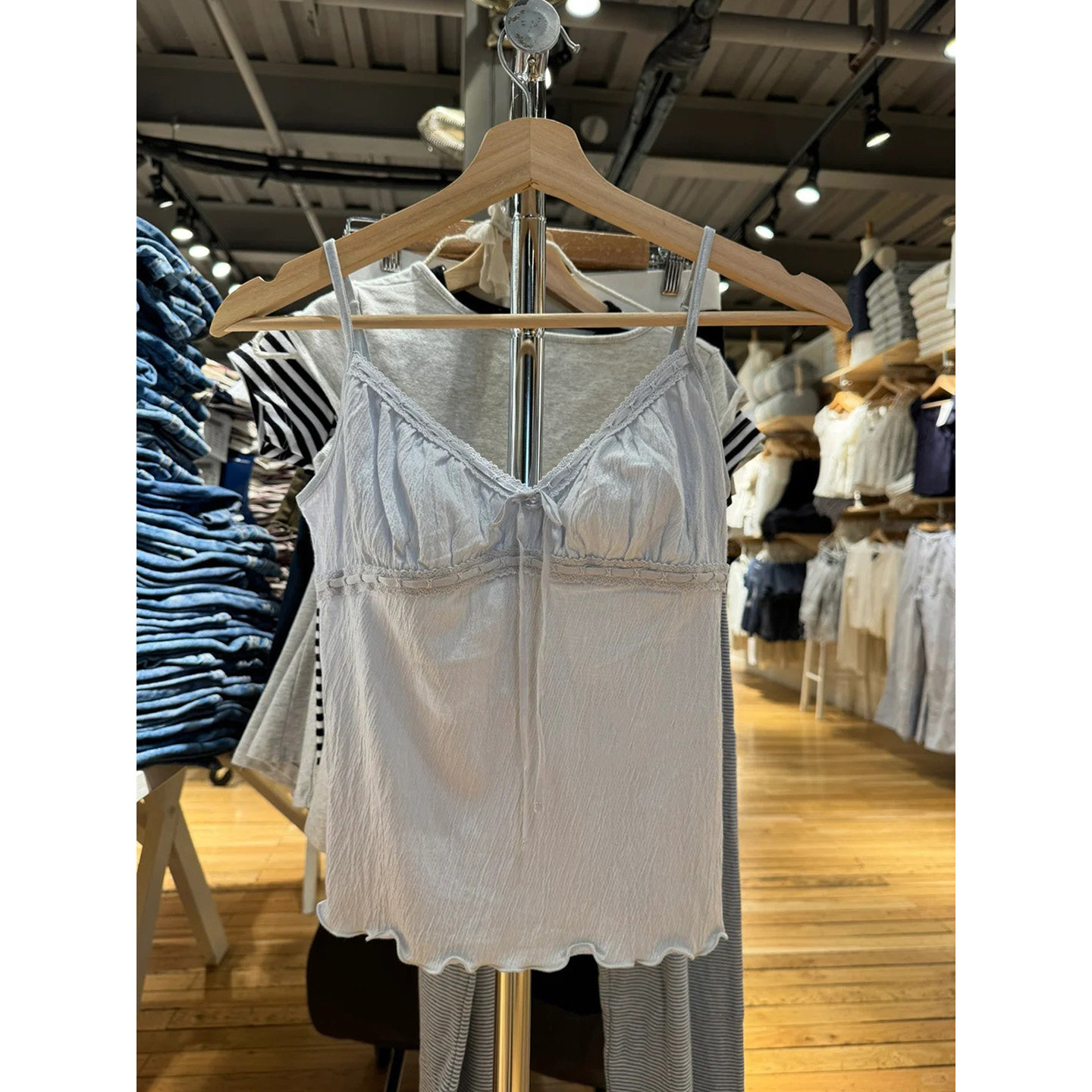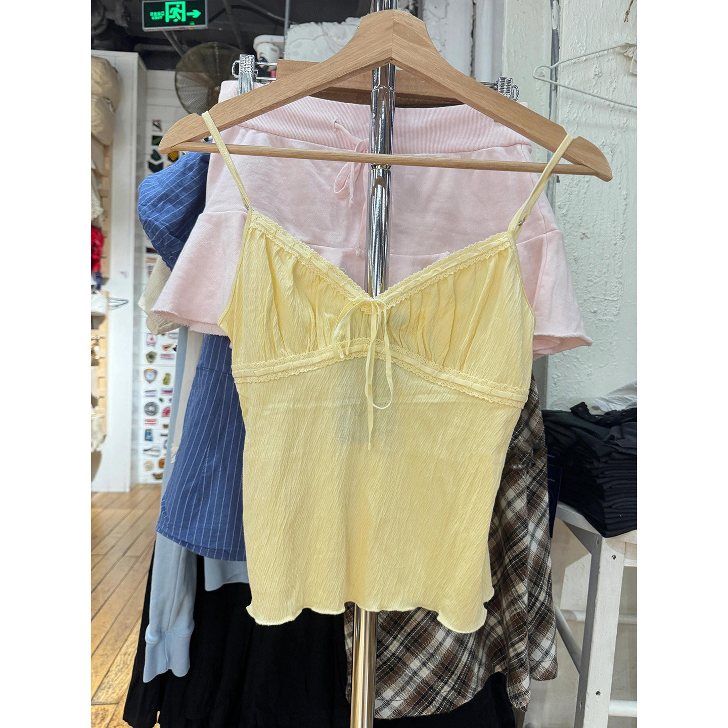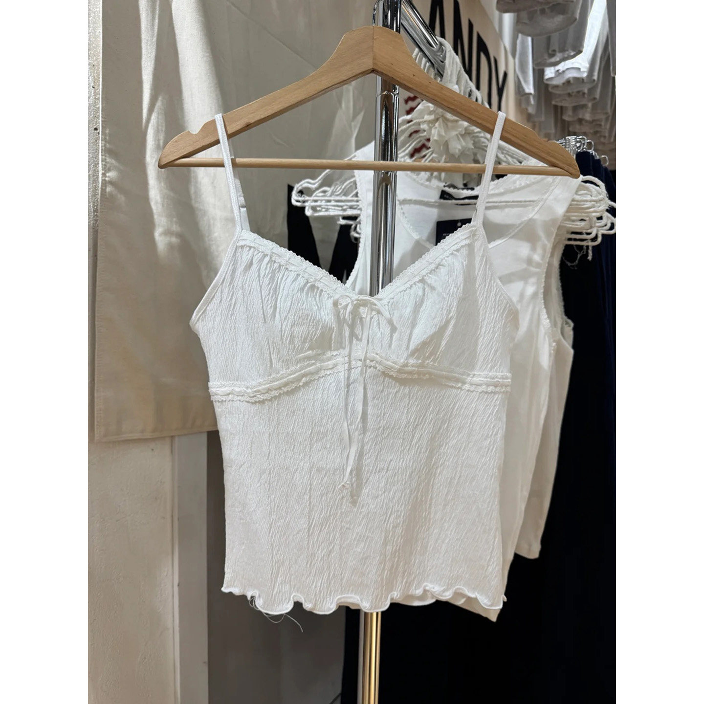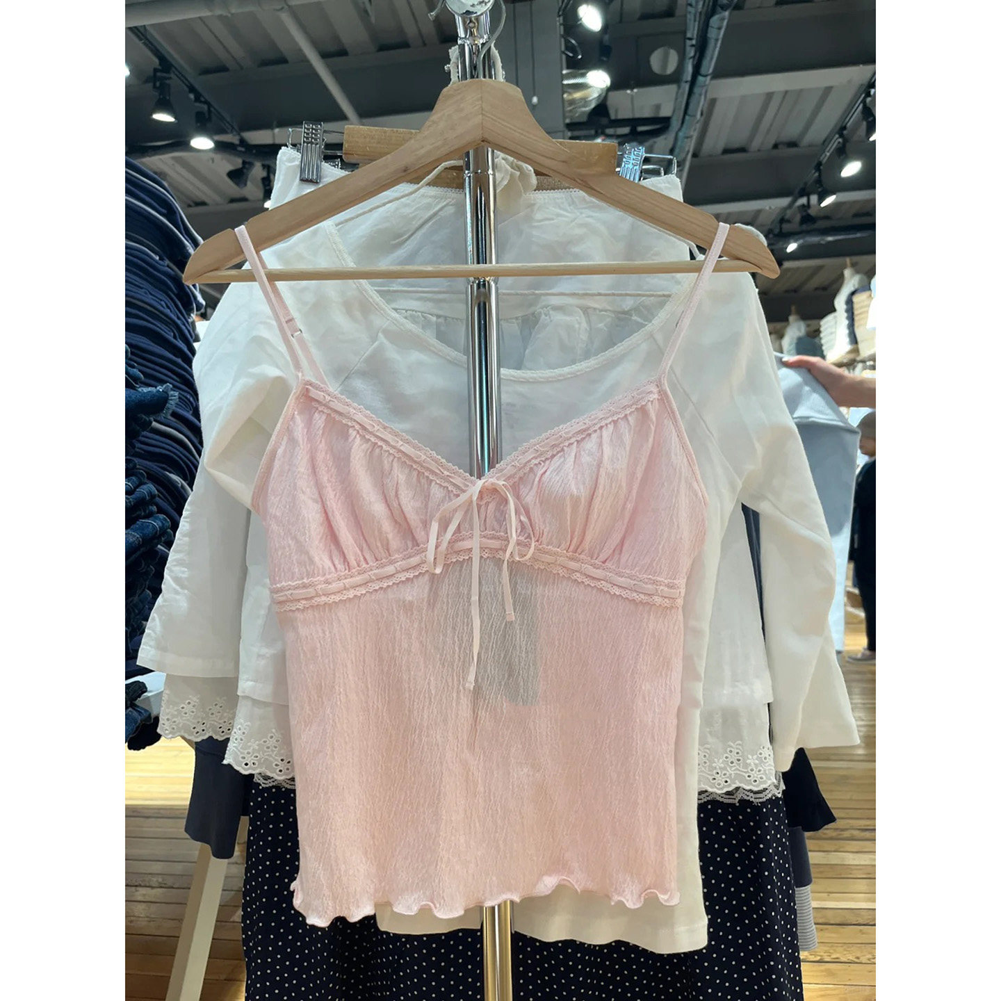 📚 BM新款木耳边绝美花边系带褶皱吊带背心bm纯欲百搭显瘦内搭上衣女