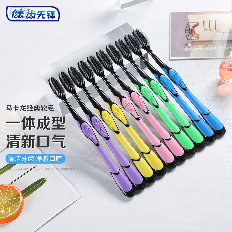 📚 健牌成人圆头软毛牙刷温和洁齿高透家庭袋装配护套干净卫生便携