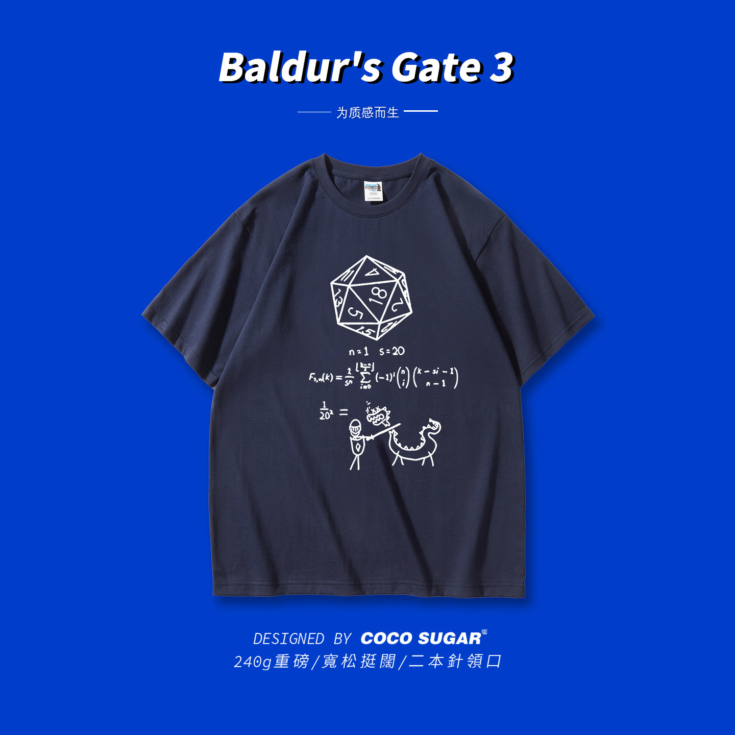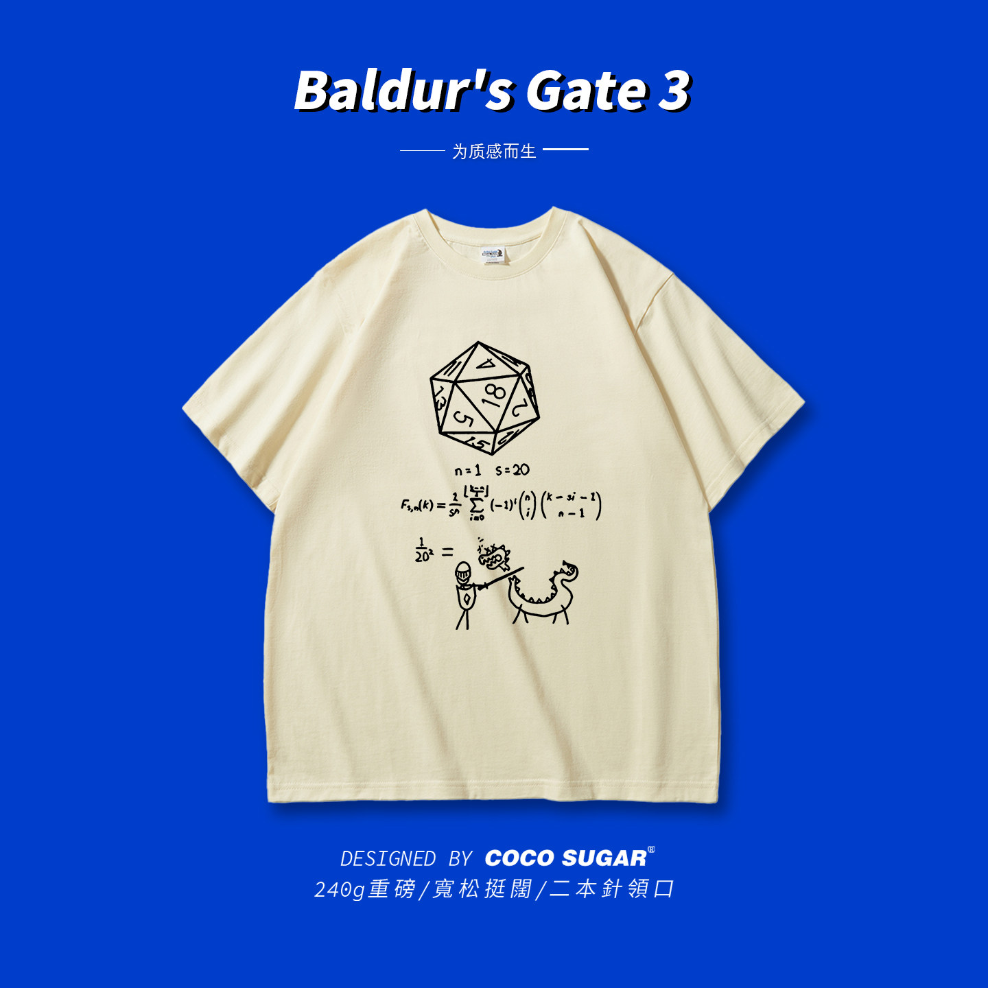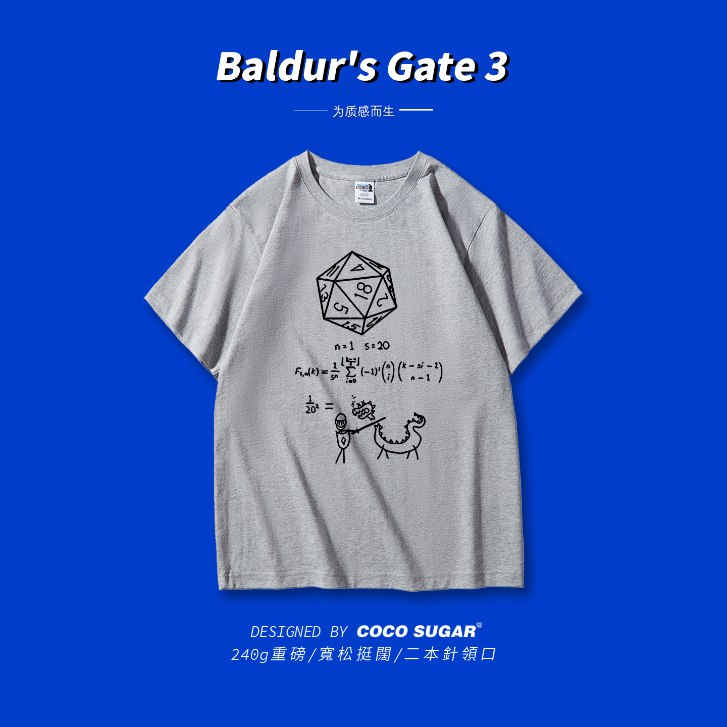 📚 博德之门3|阿斯代伦D20骰子数学公式|短袖衣服重磅高克重t恤