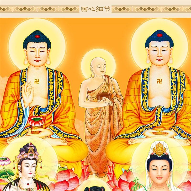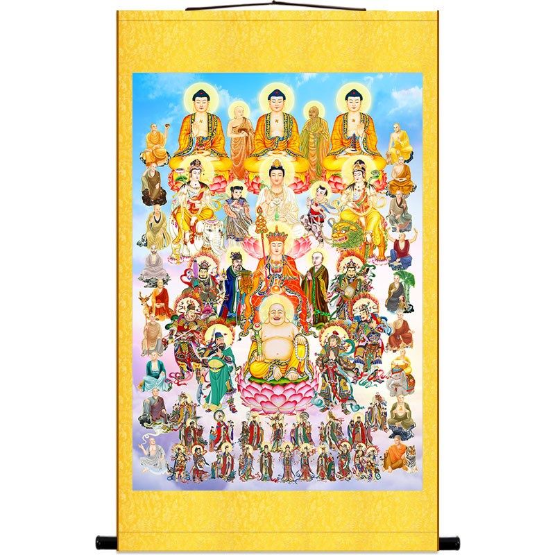 📚 全堂佛十八罗汉诸天菩萨画像 众佛全佛图 佛堂家用卷轴挂画丝绸画
