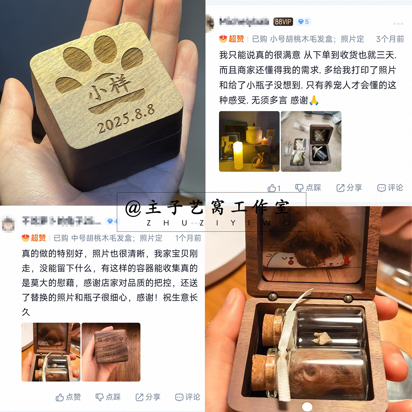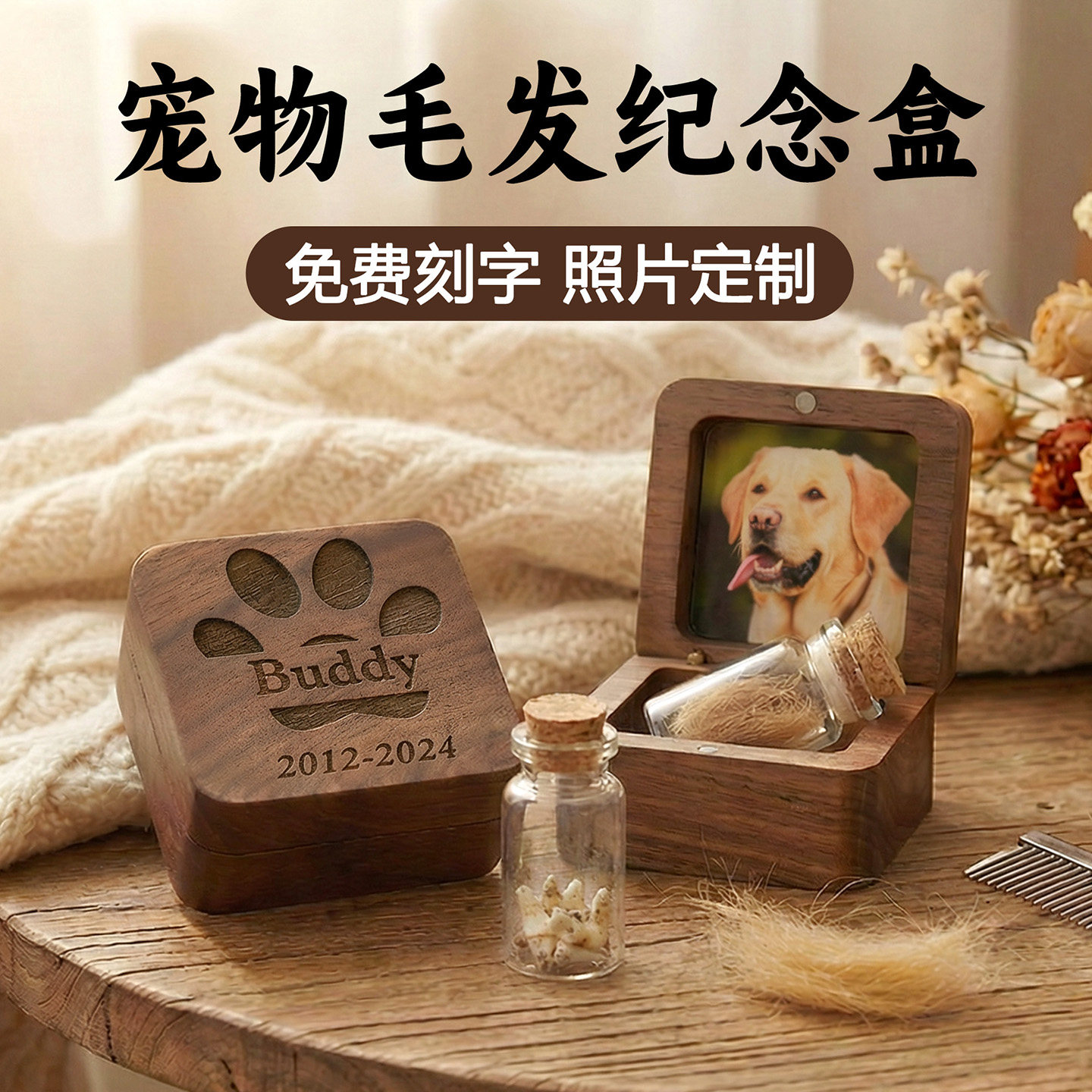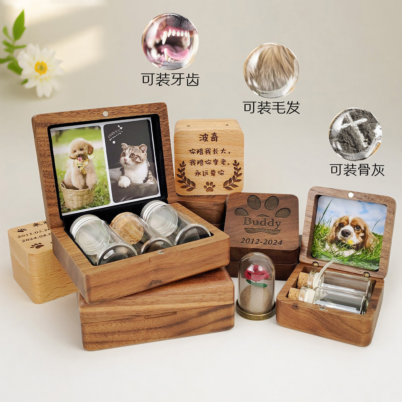 📚 宠物毛发纪念盒 狗狗猫咪离世照片定制刻字留念品 骨灰牙齿保存瓶