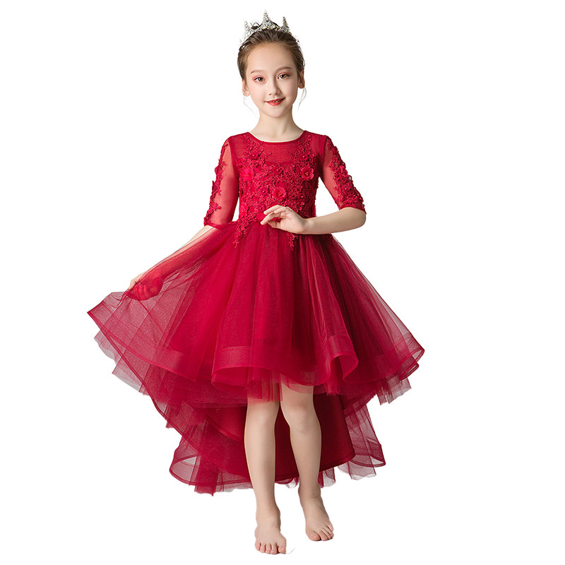 📚 公主裙女童生日小女孩花童婚纱儿童主持人礼服钢琴演出服红色夏季