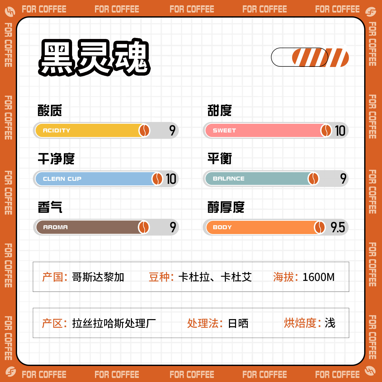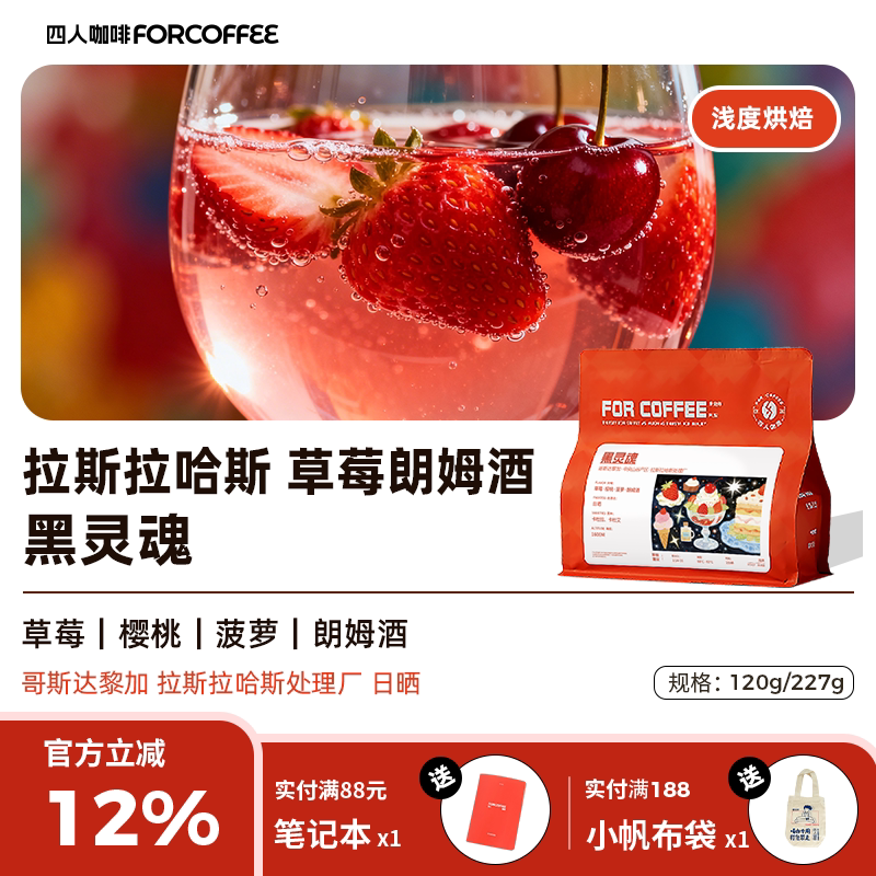 📚 四人黑灵魂哥斯达黎加拉斯拉哈斯浅烘精品日晒手冲咖啡豆120/227G