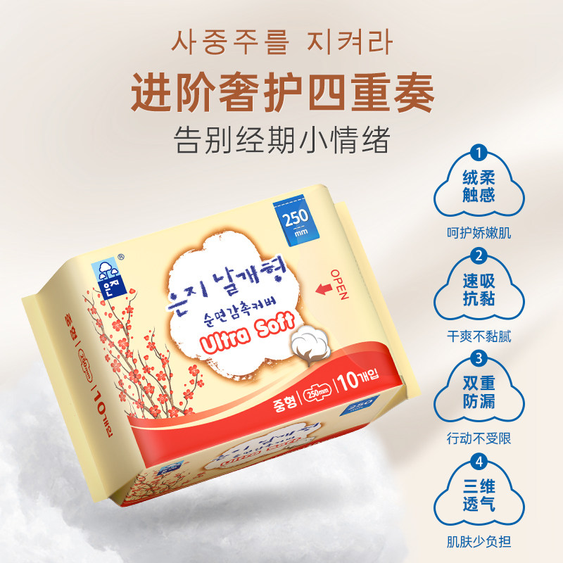 📚 韩国进口恩芝卫生巾250mm日用护翼型透气姨妈巾3包正品官方旗舰店